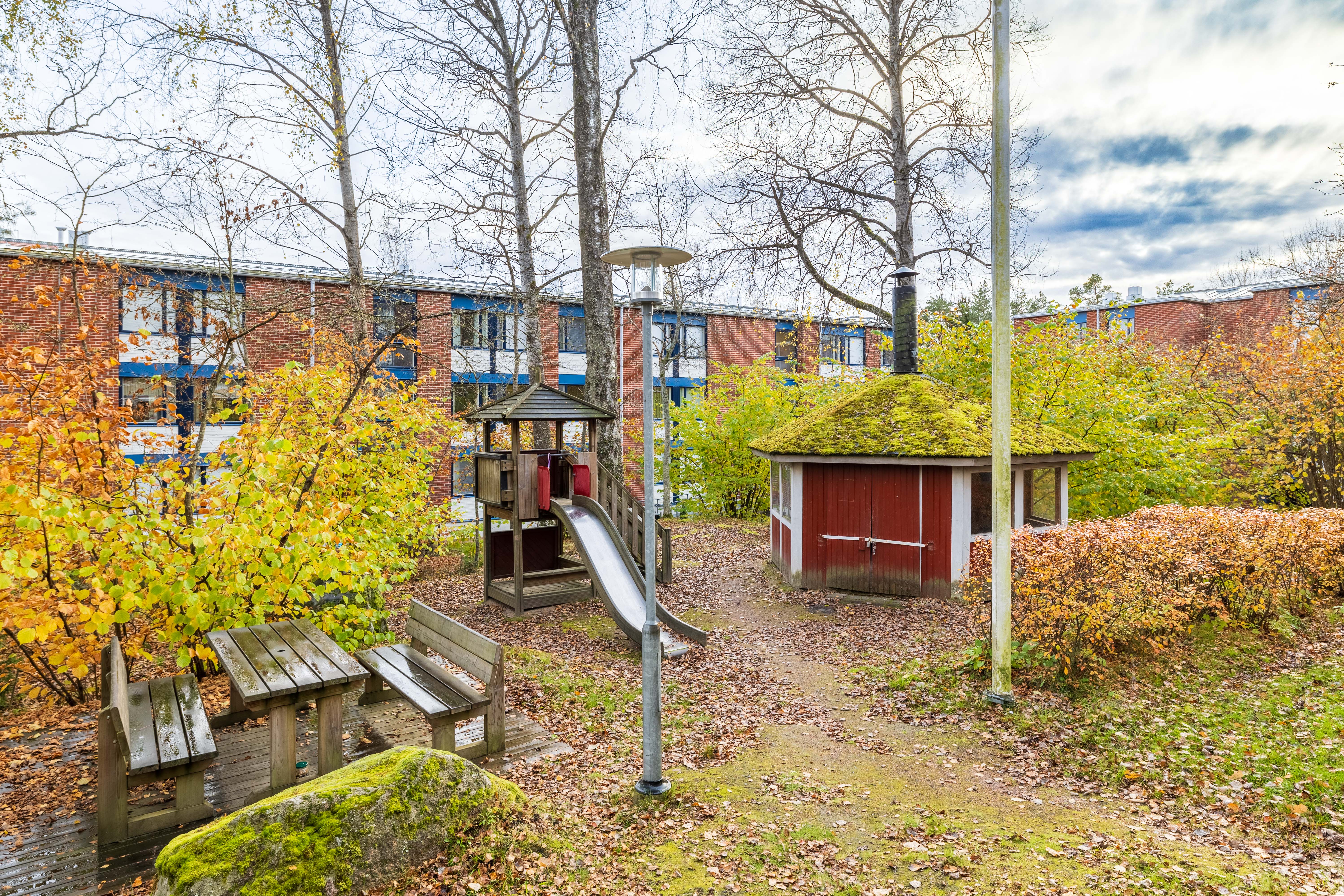 | Tehdyt remontit | 1999 Julkisivusaneeraus 2000 Kattokunnostus 2002 Salaojien kunnostus (D ja E-talot) 2004 Porraskäytävien maalaus 2005 Lukkojen uusinta 2007–08 Sauna- ja uima-allastilojen kunnostus 2009 Parvekeovien kunnostus 2010 Ikkunat uusittu (ei parvekeikkunoita) 2012 Salaojien kunnostus (A, C, F ja G-talojen osalta) 2012 Antenniverkon kunnostus 2013 Leikkipaikan kunnostus 2013 Hissien peruskorjaus (F ja G raput) 2013 Rännien ja syöksytorvien uusiminen 2013 Kylmähuoneiden laitteistojen uusiminen (F ja G-talot) 2014 Lämmönsiirtimien uusiminen 2015 Julkisivupellitysten uusiminen 2015 Uima-altaan lämmönsiirtimien uusiminen (D ja E-talot) 2015 Saunanlauteiden uusiminen (D ja E-talot) 2015–16 Putkisaneerauksen hankesuunnittelu 2016–17 Putkistosaneerauksen toteutussuunnittelu 2018–19 Linjasaneeraus 2019–20 Kerrostaso-ovien ja lukitusten uusiminen 2021–22 Lisäparkkipaikkojen rakentaminen sähköautoille 2022 Patteriverkoston tasapainotus ja säätö 2023 A-talon parvekekattojen pesu, saumojen puhdistus ja korjaus, sekä A ja B parvekerakenteiden sammalkasvuston torjunta 2024 Yläpohjan eristevillojen uusiminen ja kattosillat |