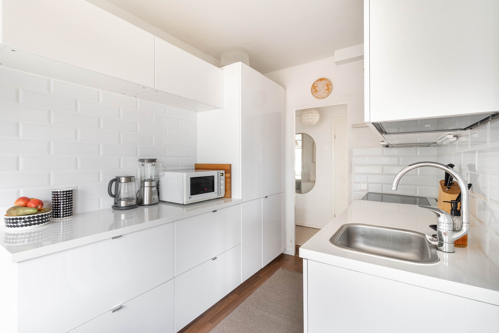 Yhtiössä on tehty paljon remontteja ja mm. siirrytty maalämpöön – huoneistossakin viilennyslaite kesän kuumia päiviä ajatellen.