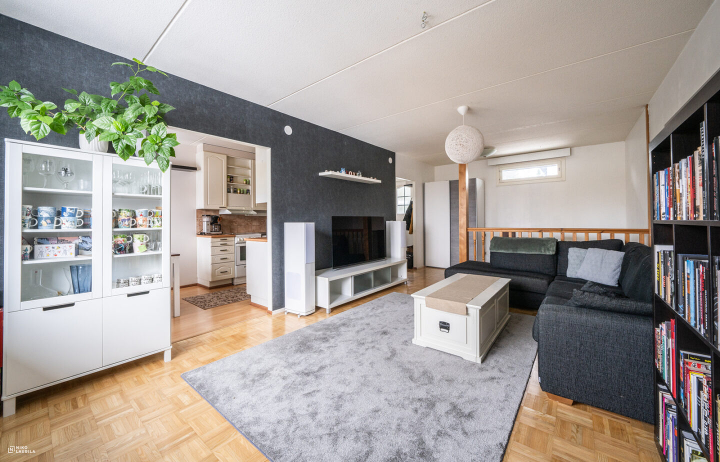 Avara ja valoisa kahden tason päätykolmio viihtyisällä asuinalueella, jossa kaikki palvelut, mm. koulut, päiväkodit, kauppa, apteekki ym. kävelyetäisyydellä. Asuntoon kun astut sisään avautuu olohuone ja keittiö sekä wc, alakerrassa sijaitsee kylpyhuone sekä kaksi makuuhuonetta, joista toisesta uloskäynti viihtyisälle pihaosuudelle länteen päin. Taloyhtiö on hyvin hoidettu ja pihapiiri erittäin lapsiystävällinen. Tervetuloa tutustumaan!