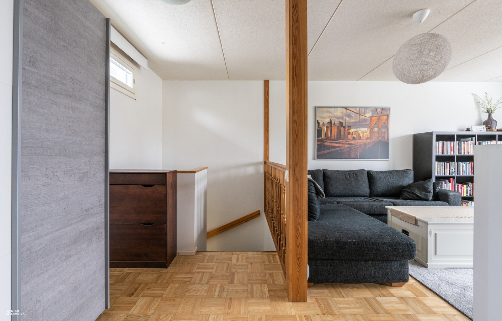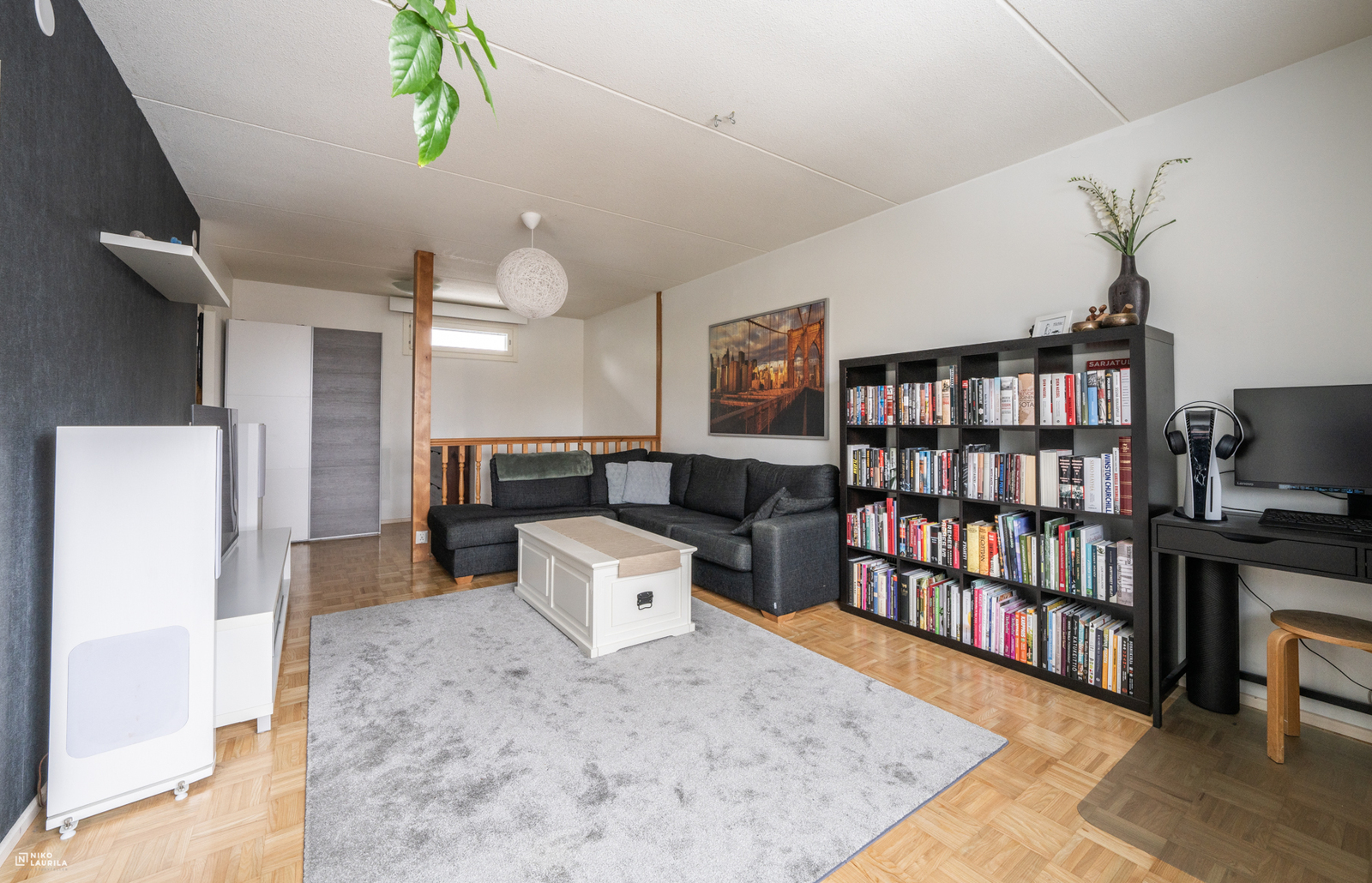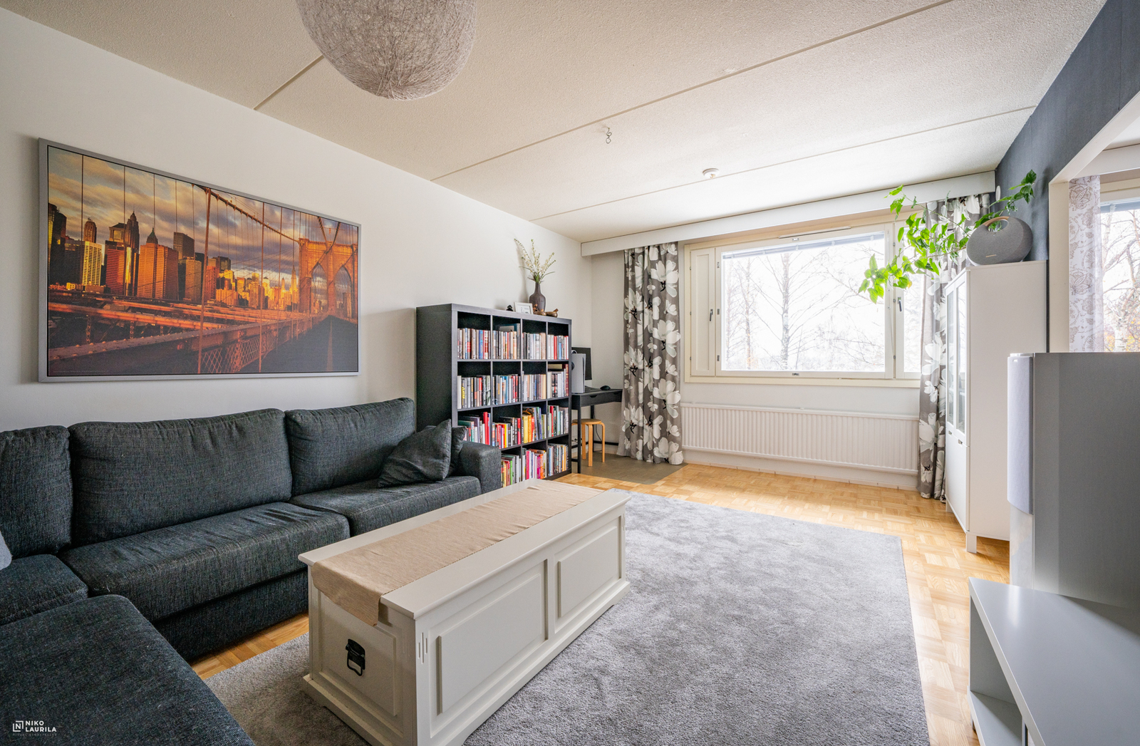 | Olohuoneen kuvaus | Seinät (maali ja tapetti), lattiat (parketti) |