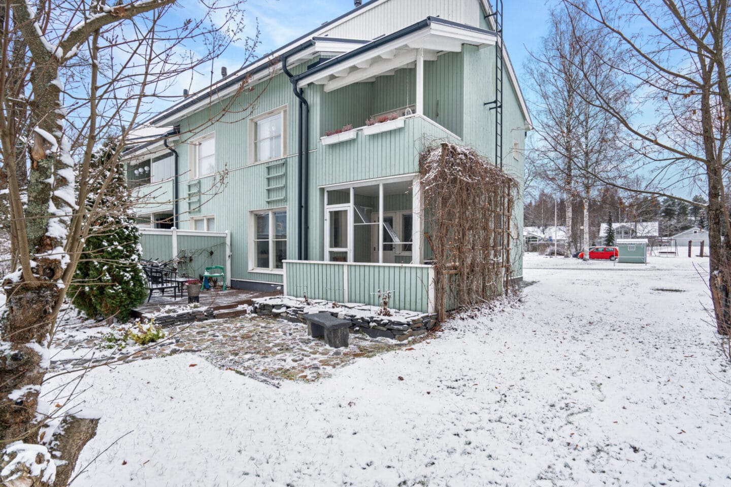 Utrasta tarjolla nyt kaksitasoinen koti seuraavaa asukasta ajatellen. Tämä koti tarjoaa kaksitasoisen ratkaisunsa lisäksi nykyaikaisen keittiön riittävine kaappi- sekä laskutiloineen. Vierestä avautuva olohuone on tunnelmallinen ja kodikas. Eteisaulan yhteydessä säilytystilaa sekä käynti WC:hen. Portaat kuljettavatkin sinut seuraavaksi toiseen kerrokseen, joka kätkeekin kaksi makuuhuonetta, kaakelipinnoin varustetun kylpyhuoneen pesukoneliitäntöineen sekä ikkunallisen saunan. Tämän kerroksen yhteydessä myös katettu parveke. Huoneistolla ruhtinaallisen kokoinen takapiha ulkopatiolla sekä katetulla terassilla varustettuna. Etupihan puolella ulkovarasto talon yhteydessä sekä sähköpistokepaikka asukkaan käytössä.
