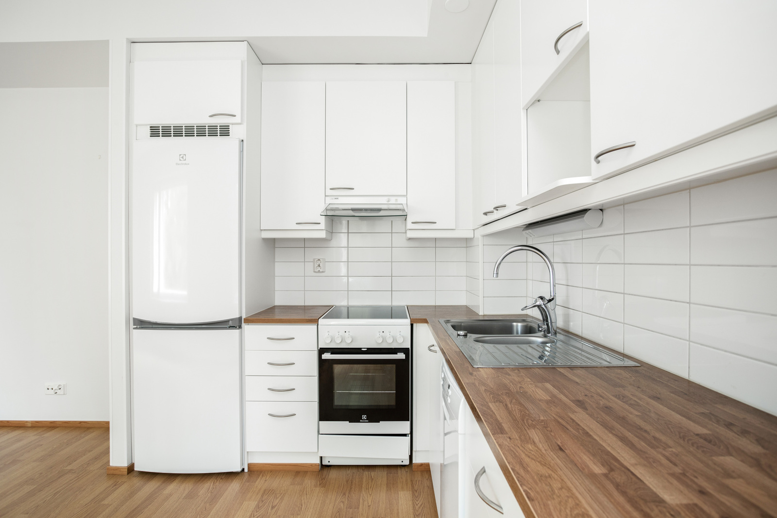 | Keittiön kuvaus | Liesi (Keraaminen liesi), työtasot (laminaatti), seinät (maali), lattiat (laminaatti), jääkaappipakastin, astianpesukone ja liesituuletin / hormi |