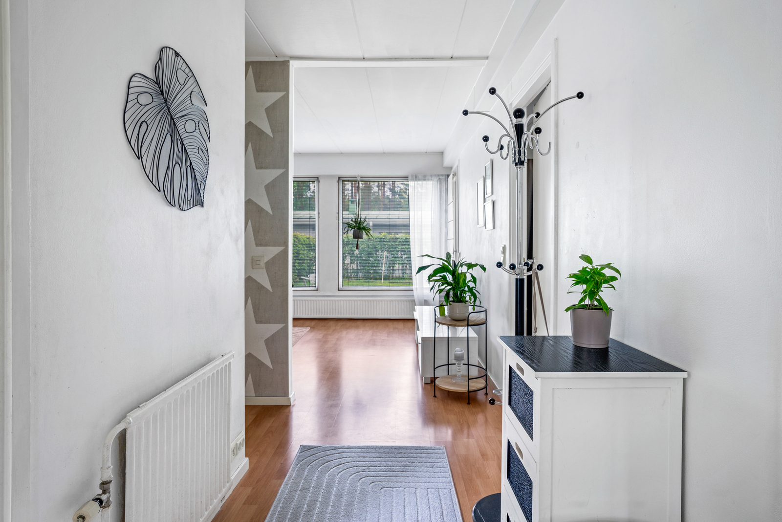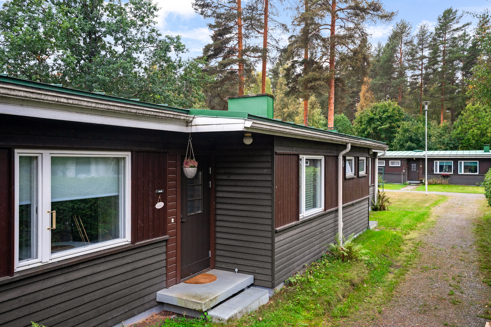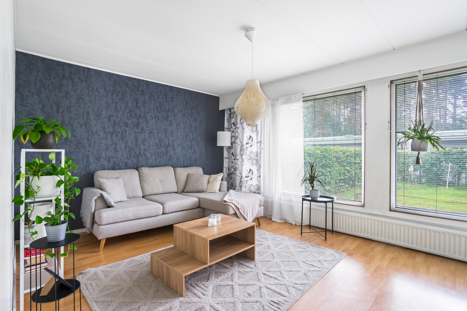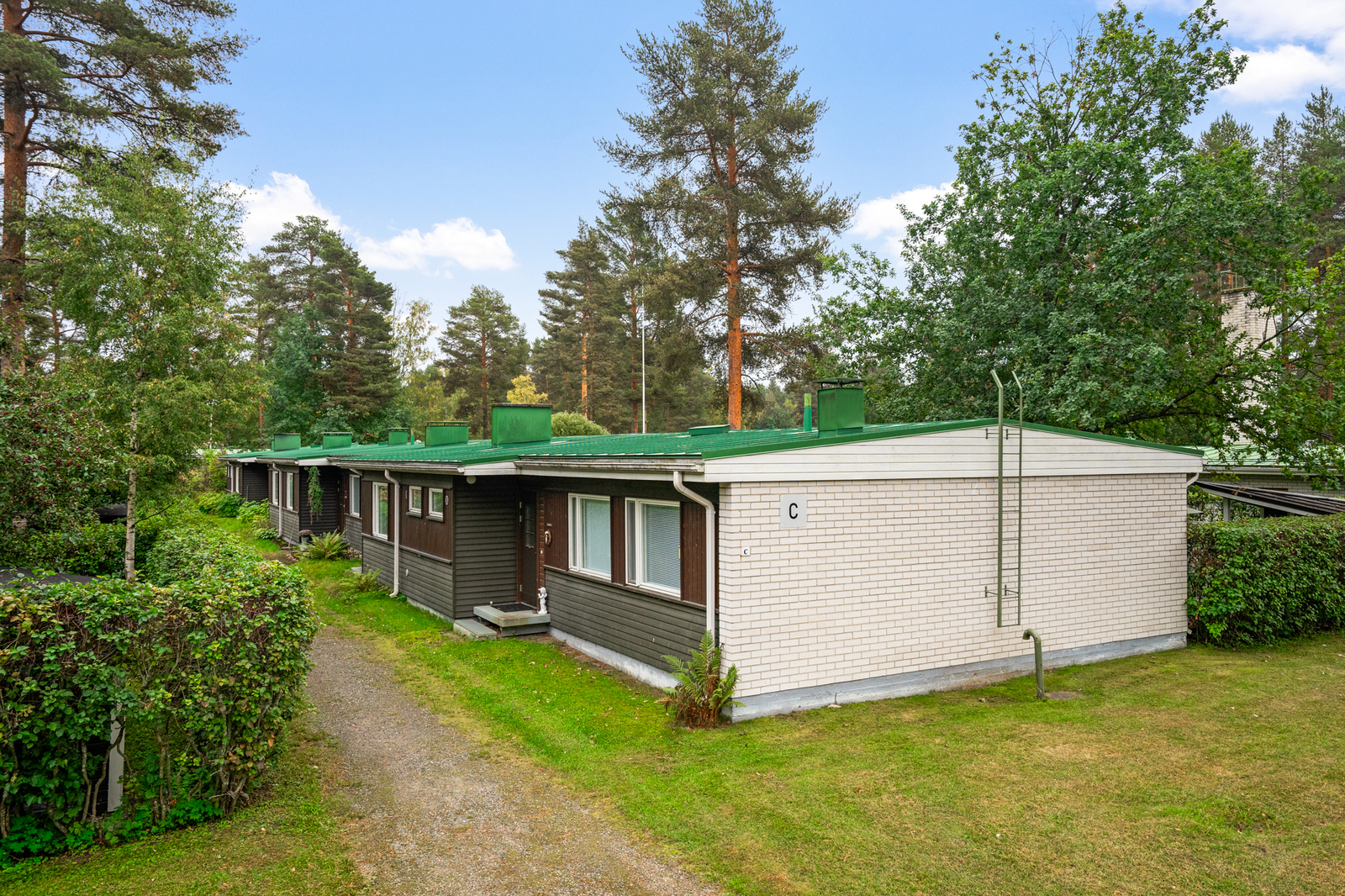 Rauhalliselta sijainnilta siisti rivitalokolmio, missä pohjaratkaisu on toteutettu fiksusti. Huoneiston keskiössä on isokokoinen ja avara olohuone, mistä avautuu pihanäkymä huoneiston käytössä olevalle pihalle. Toinen makuuhuone olohuoneen vieressä, mistä myös pihanäkymä. Tässä huoneessa on kaappitilaa yhden seinustan verran. Toisessa makuuhuoneessa on myös samalla tavalla kaappitilaa ja tässä etupihanäkymä. Keittiö tarjoaa kaappitilaa kattoon saakka, jonka ansiosta on maksimoitu kaikki käytettävä tila. Kylpyhuone on järkevästi sijoitettu keskelle asuntoa.