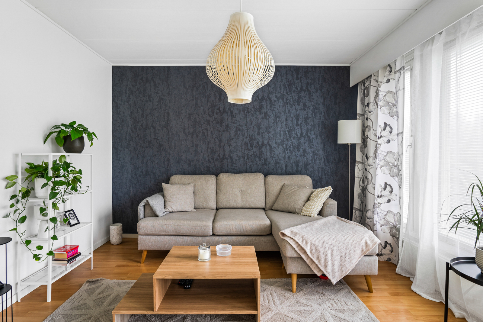 | Olohuoneen kuvaus | Seinät (tapetti ja maali), lattiat (laminaatti) |