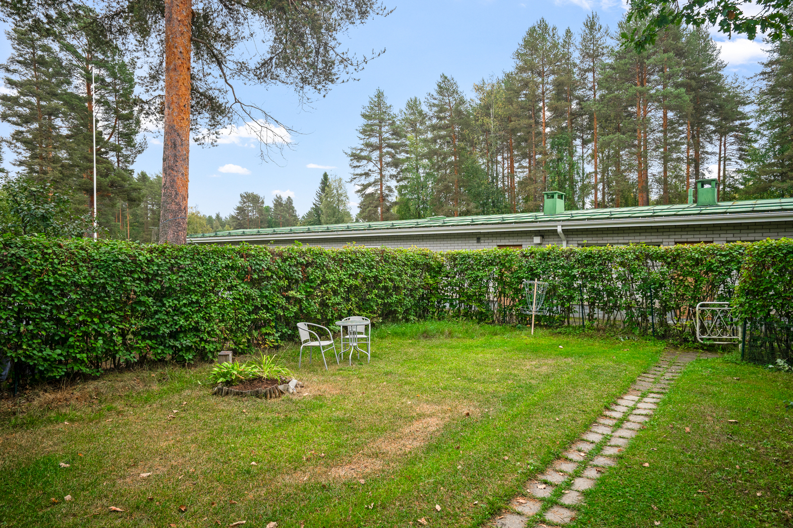 Olohuoneesta on pääsy terassille sekä huoneiston käytössä olevalle piha-alueelle. Piha on vehreä ja reilun kokoinen. Taloyhtiössä on vuosien saatossa uusittu mm. käyttövesiputket, lämpöjohdot, lämmönjakohuoneen patteriverkoston pumppu, lämmönsiirrin, autokatoksen rakentaminen, ulko-ovet ja viimeisimpänä kesällä 2025 tehty viemärien sukitus. Tuleville vuosille on suunnitteilla pihan tolppavalojen uusiminen, taka-ovien uusiminen, vesikatteen pesu ja pinnoitus, sekä tontin ostaminen tai vuokrasopimuksen jatkaminen.