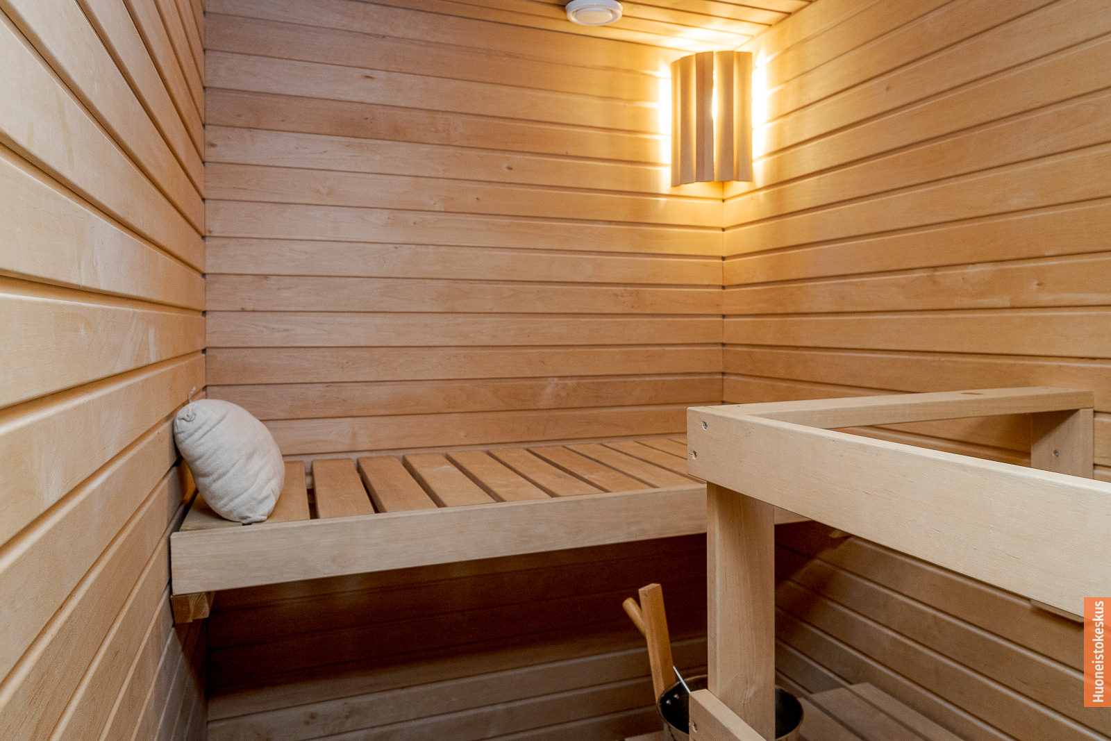 | Saunan kuvaus | Seinät (puu), lattiat (laatta), Sähkökiuas |