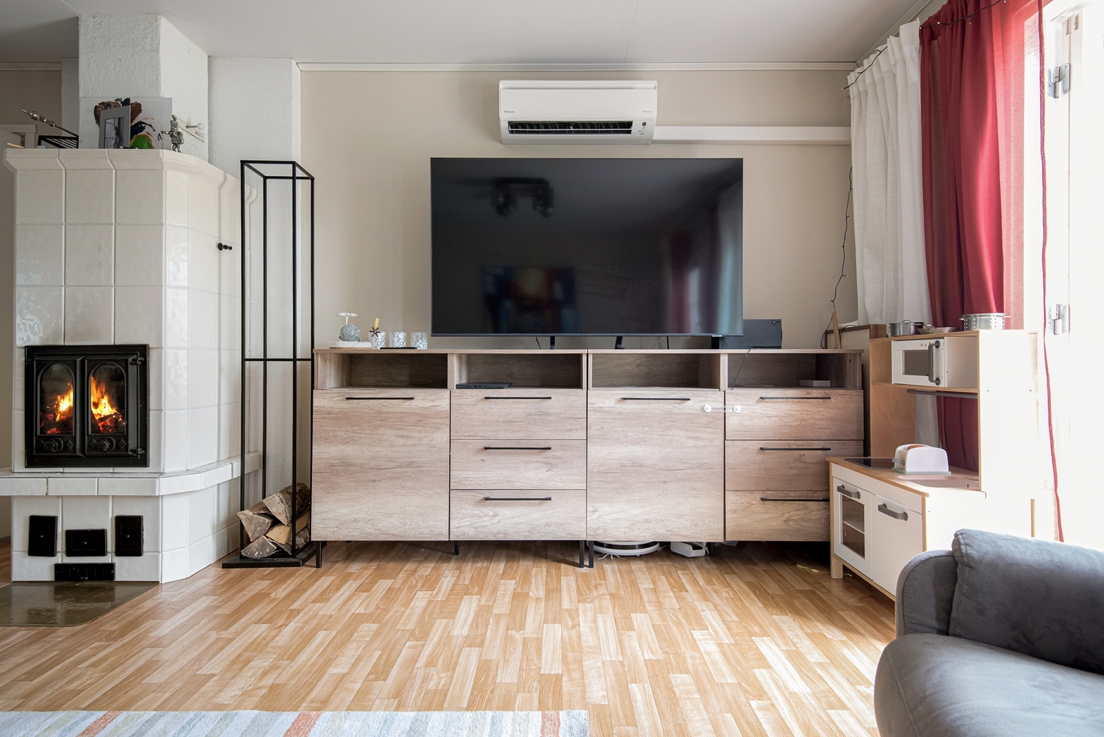 Puu, sähkö, ilmalämpöpumppu ja sähköinen lattialämmitys, uuni/takka, sähköpatterilämmitys |