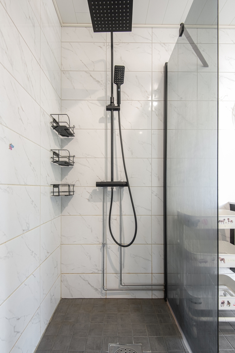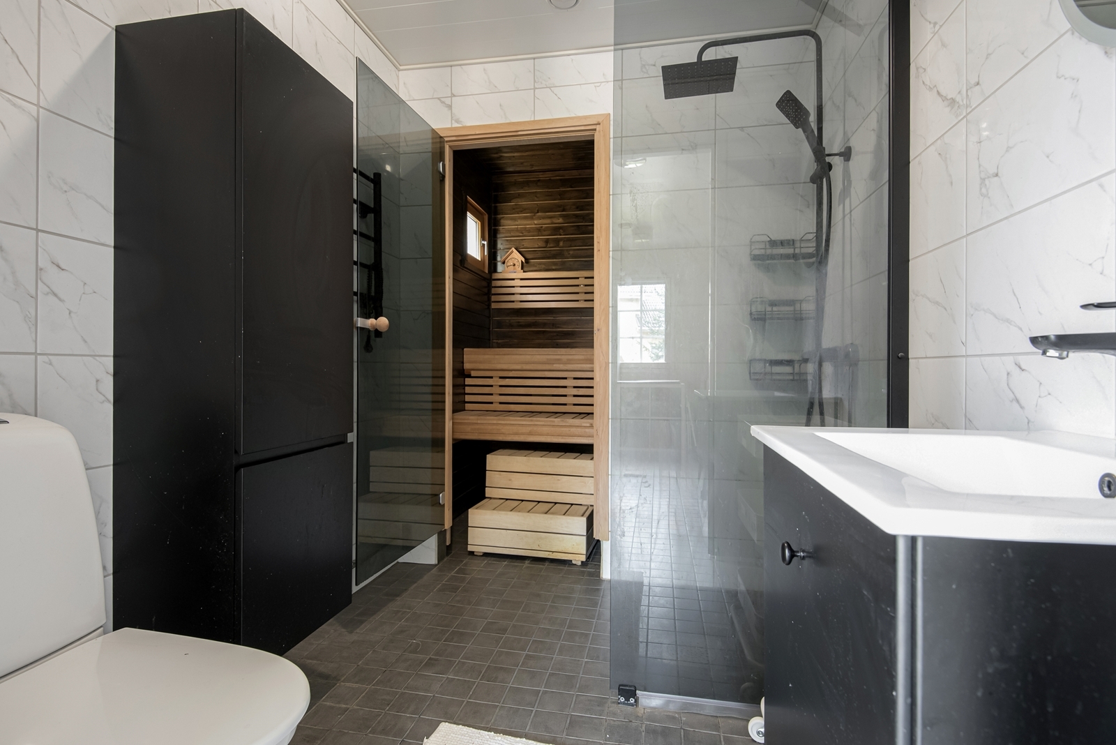 Lattialämmitys ja suihku, seinät (kaakeli), lattiat (laatta) |