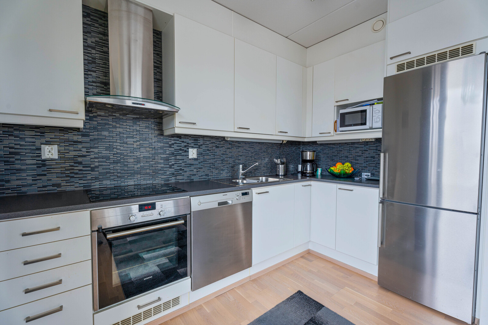 | Keittiön kuvaus | Liesi (Keraaminen liesi), työtasot (laminaatti), seinät (maali), lattiat (parketti), jääkaappipakastin, liesituuletin ja astianpesukone |