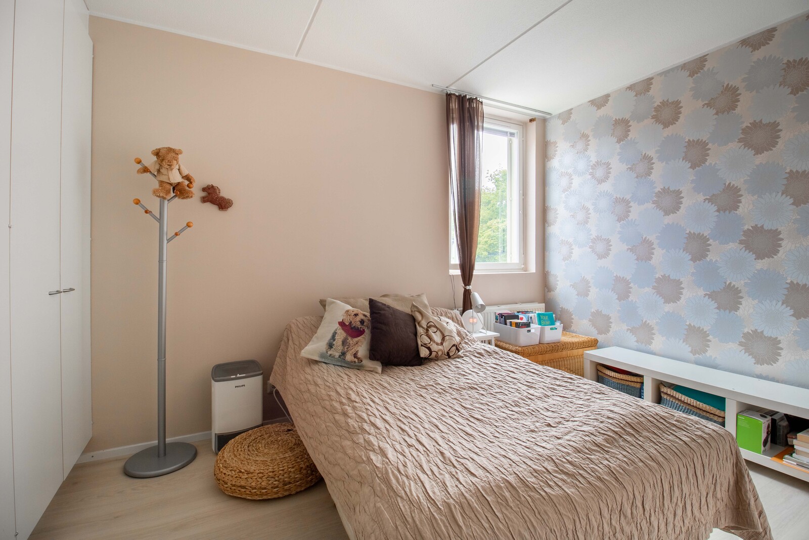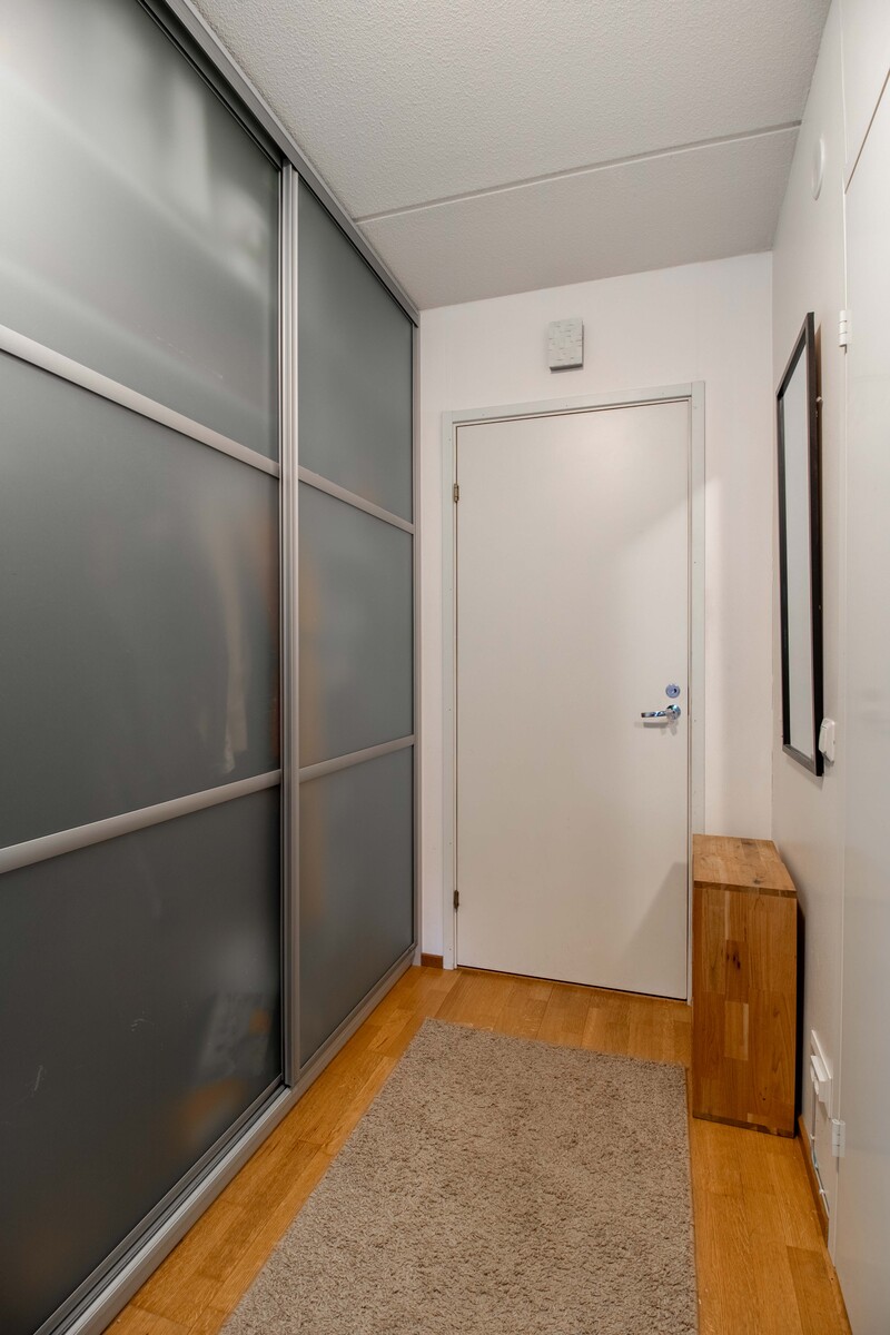 Tilavassa makuuhuoneessa ja eteisessä on runsaasti säilytystilaa.