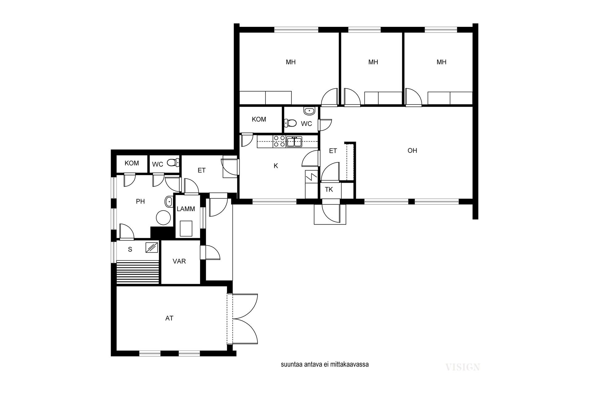 Pinta-alatieto on rakennusta koskevista asiakirjoista mutta sitä ei ole tarkistusmitattu joten se saattaa poiketa olennaisestikin nykystandardein mitattavasta pinta-alasta, Ei |