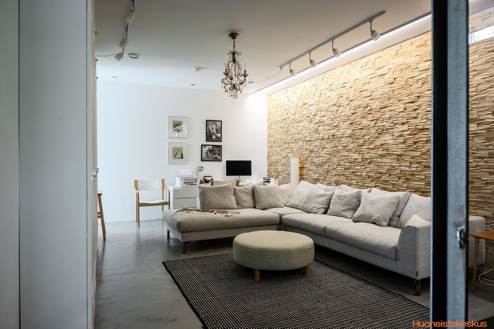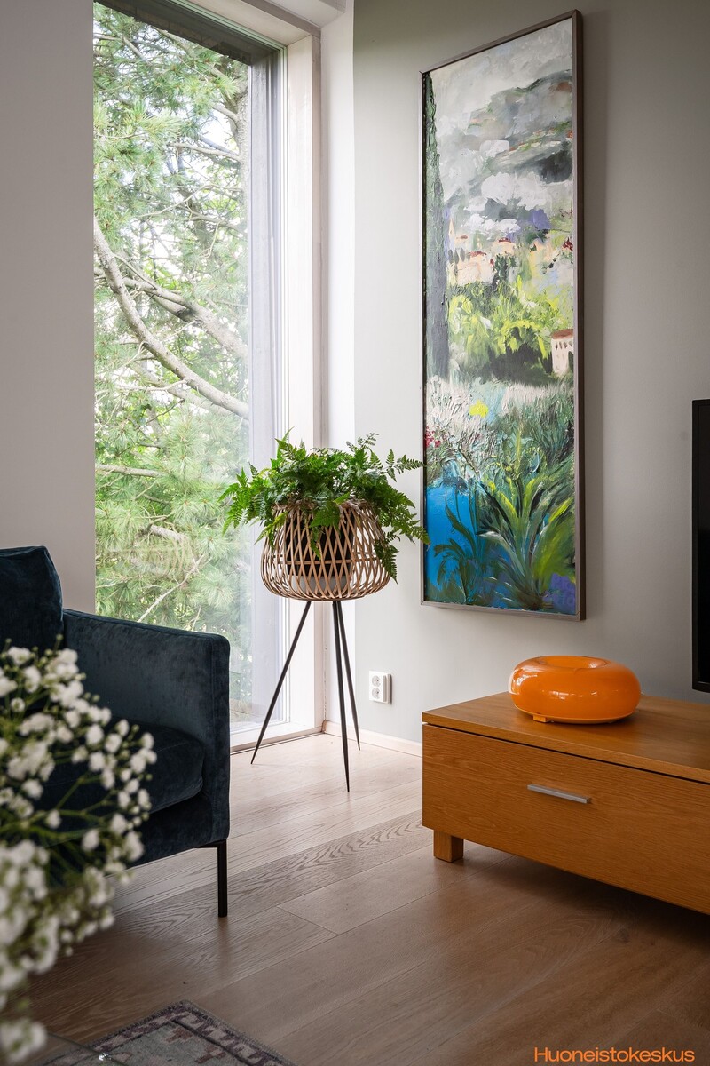 | Olohuoneen kuvaus | Seinät (maali), lattiat (parketti), Parketti Kährs valkovahattu, öljytty tammi, 1-sauvanen. |