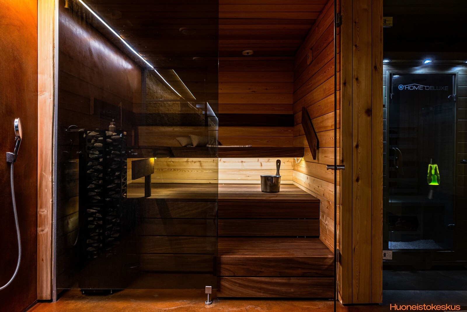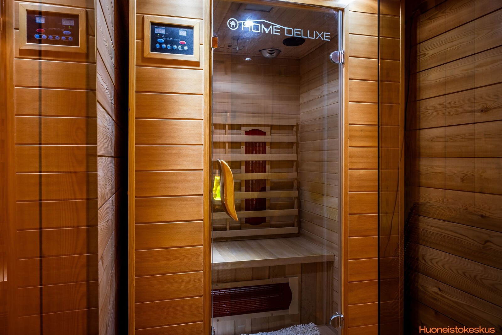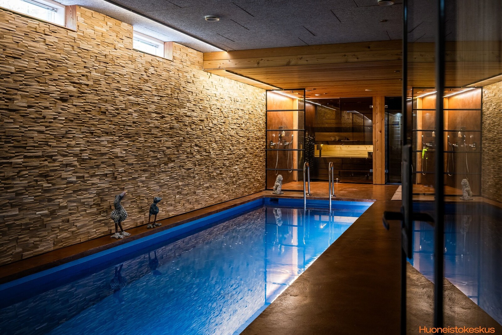 | Saunan kuvaus | Sähkökiuas, Lisäksi 2 hlön infrasauna. Uima-allas 8,70mx2,30m, veden syvyys 145cm, mikrosementti, saksalainen uima-allaspinnoite, lämmitys maalämpö ympärivuotisesti 24-26 astetta. Sähkökiuas uusittu 2024. |