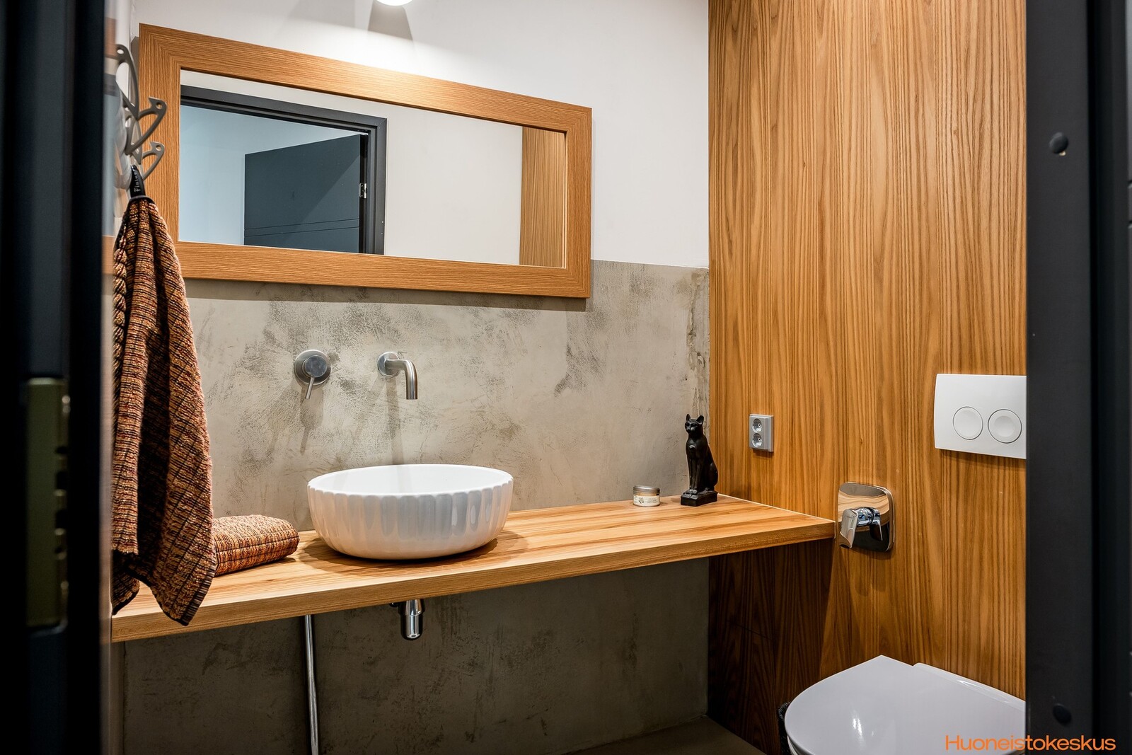 | Kodinhoitohuoneen kuvaus | Pesukone, pesuallas, kuivausrumpu, pöytätaso ja lattialämmitys, seinät (maali ja tapetti), Lattia italialainen Microtopping mikrosementti. |