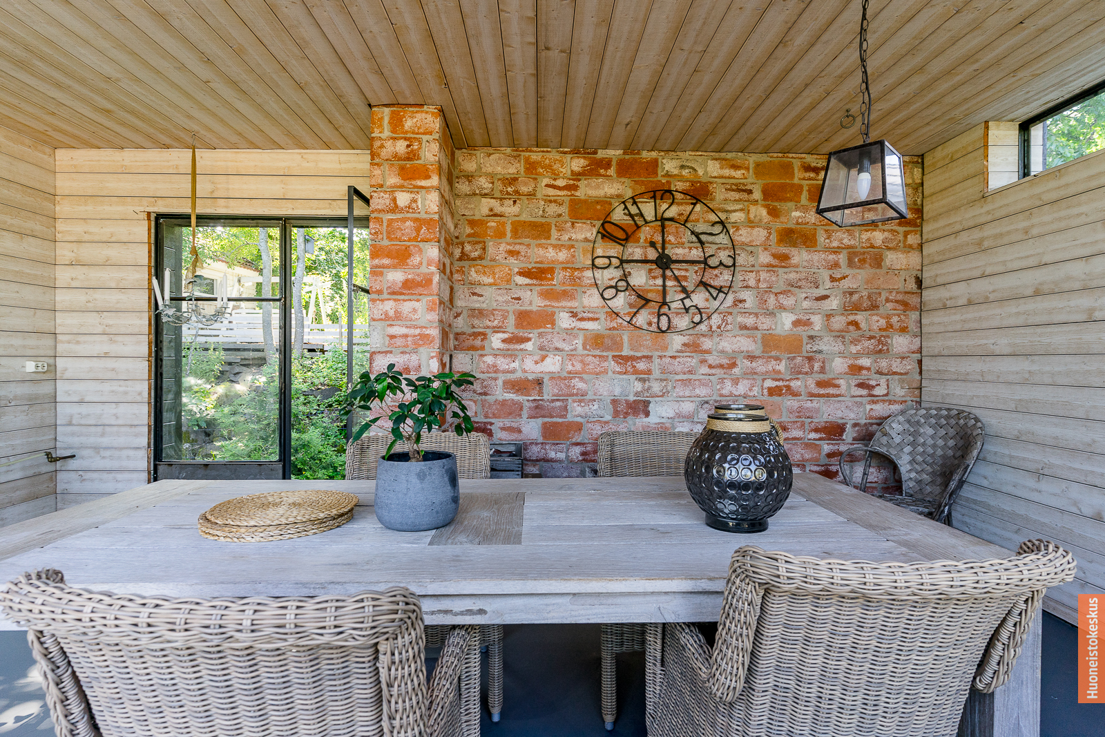 | Muuta kauppaan kuuluvaa | Lisätietoja sisältyvistä varusteista: ilmalämpöpumppu, istutukset, jätesäiliö, kiinteät valaisimet, lämminvesivaraaja, markiisi, sälekaihtimet/rullaverhot, verhotangot, (Kauppaan ei kuulu: irtain) |