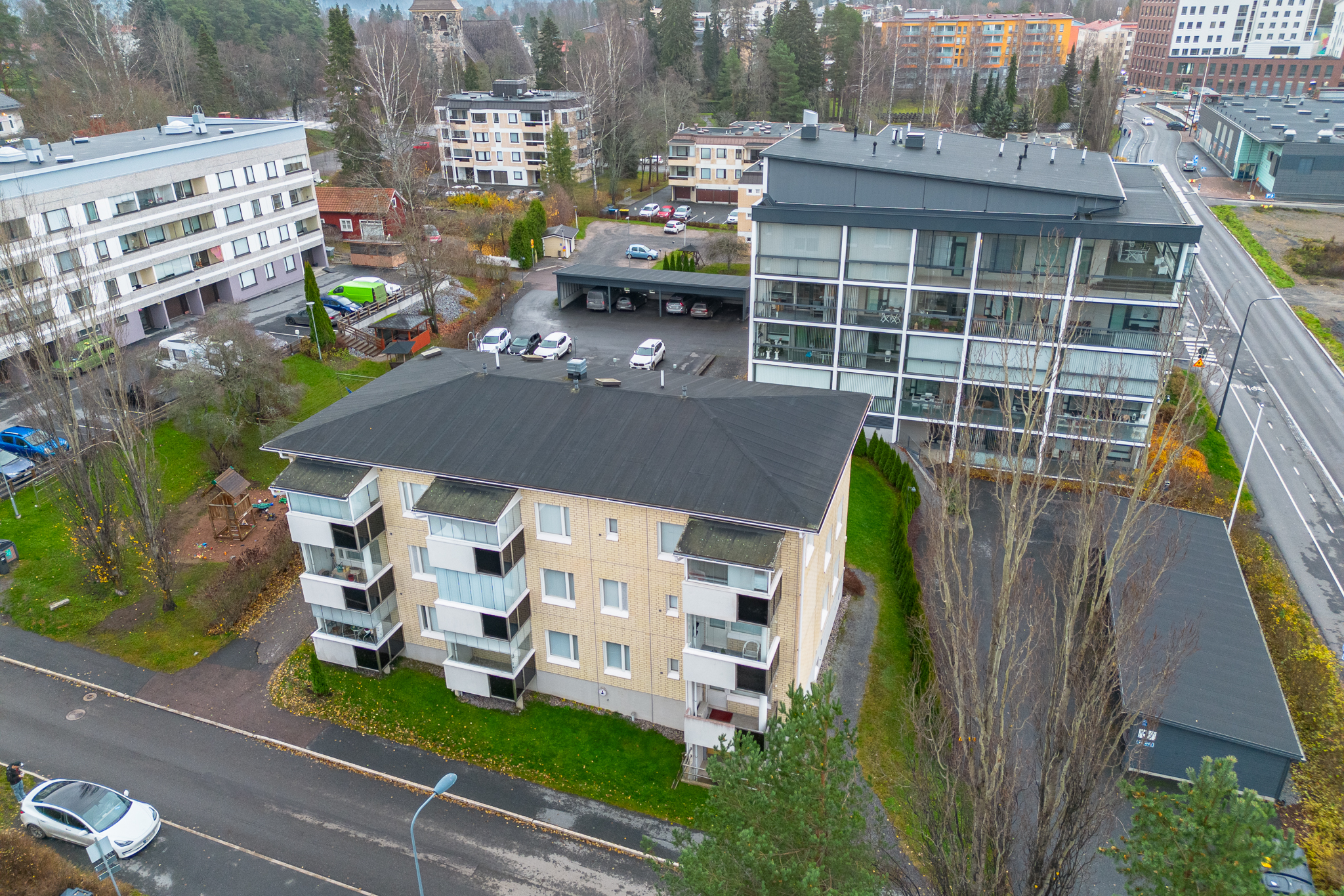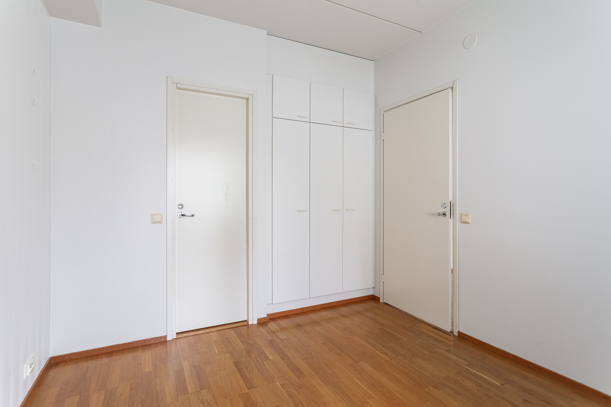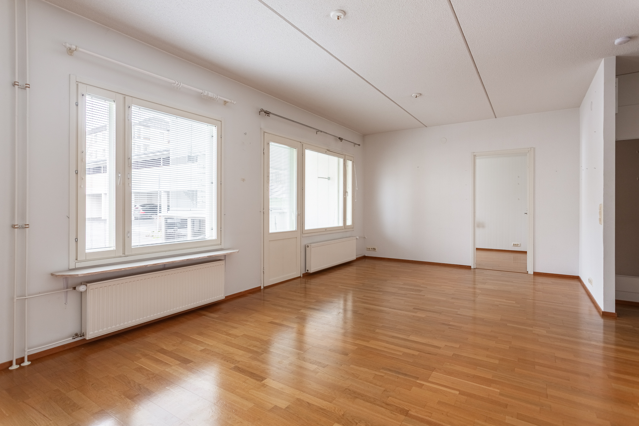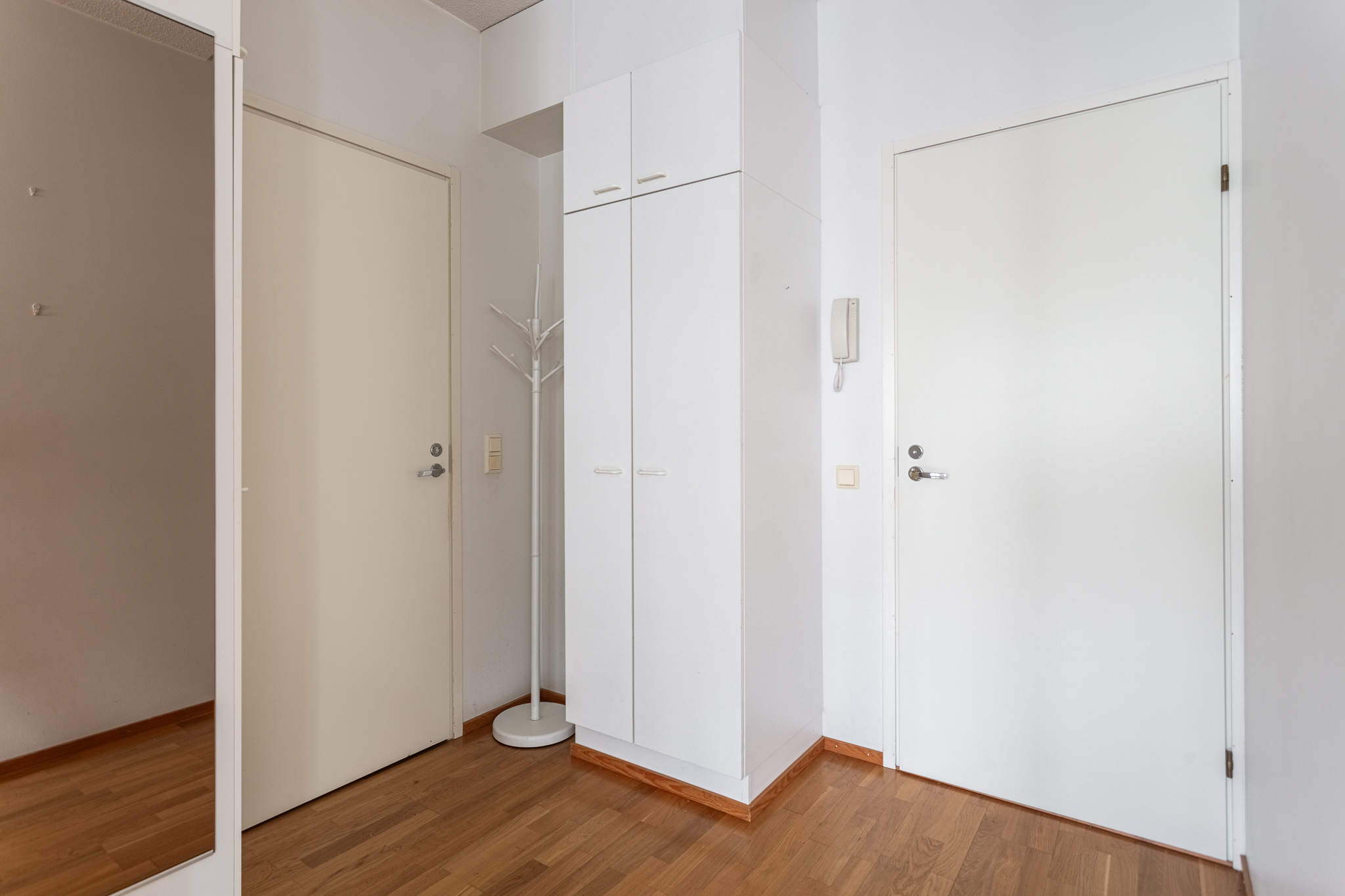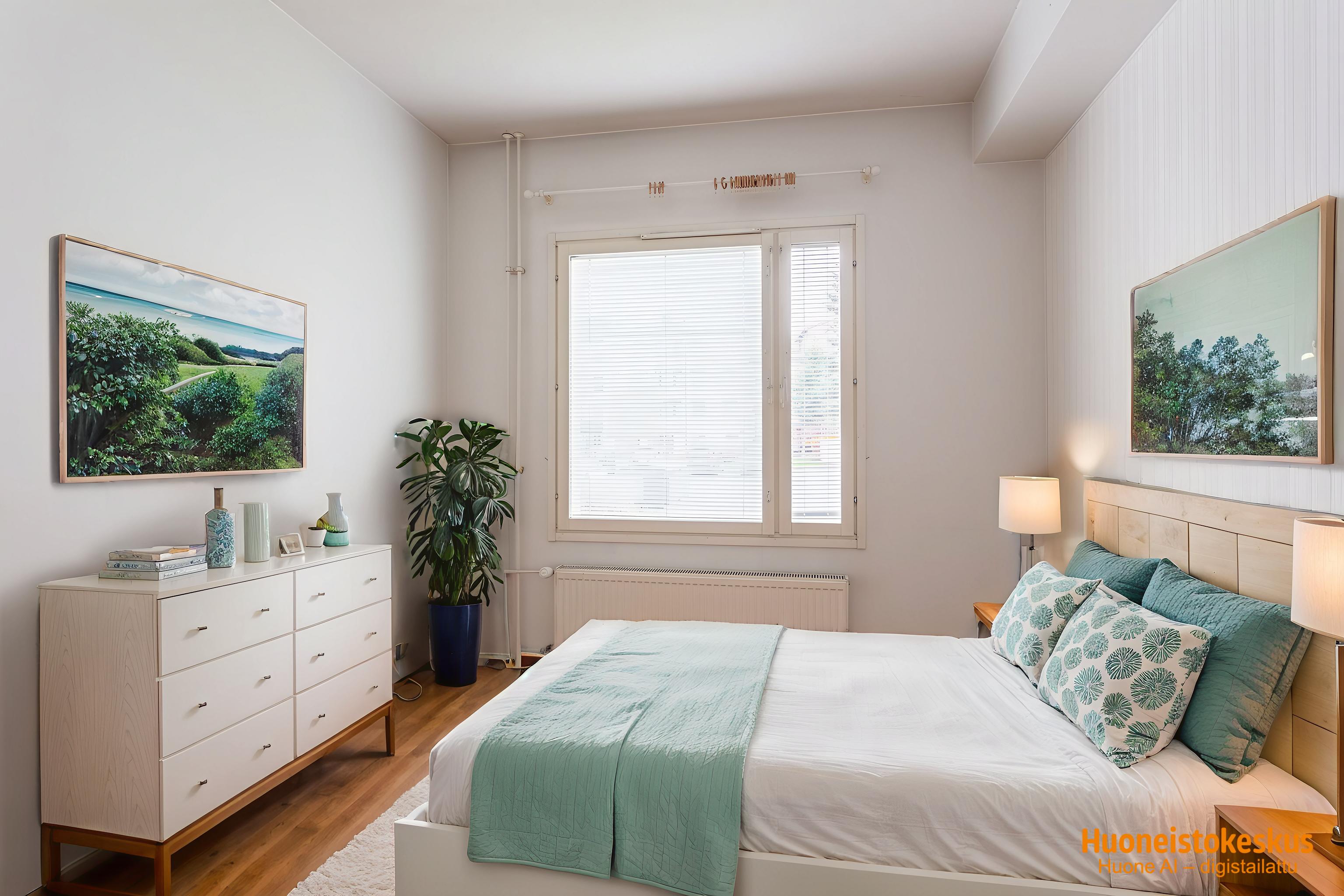 Asunnossa on kauniit siistit parkettilattiat ja maalatut seinäpinnat. Valoisuus ja tilantuntu ovat ilmeistä, keittiön ja olohuoneen ollessa yhtä avonaista tilaa. Olohuoneesta on kulku lasitetulle parvekkeelle joka on sopivasti irti maantasalta. Makuuhuoneessa on mukavasti tilaa ja löytyy myös säilytysratkaisultaan hyvä ja tilava vaatehuone.