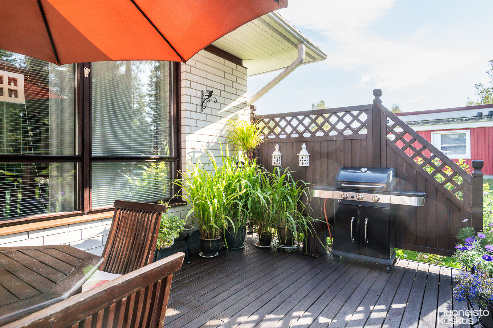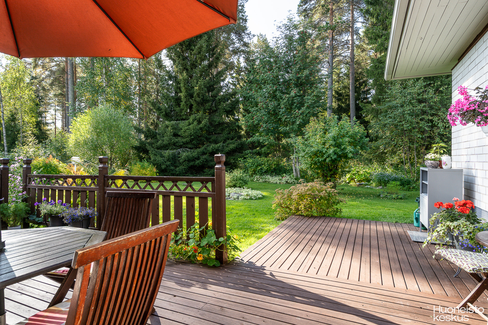 Tämän mahdollistavat 4 makuuhuonetta ja iso keittiö, takkahuone sekä olohuone, josta on käynti takapihan suojaisalle terassille.