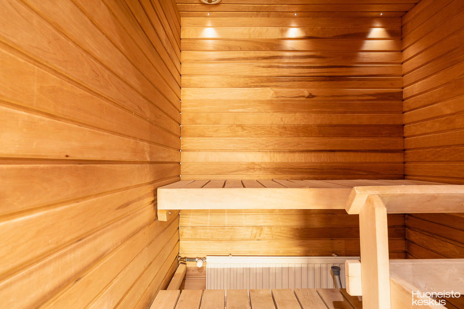 Seinät (kivi ja puu), lattiat (laatta), Sähkökiuas |