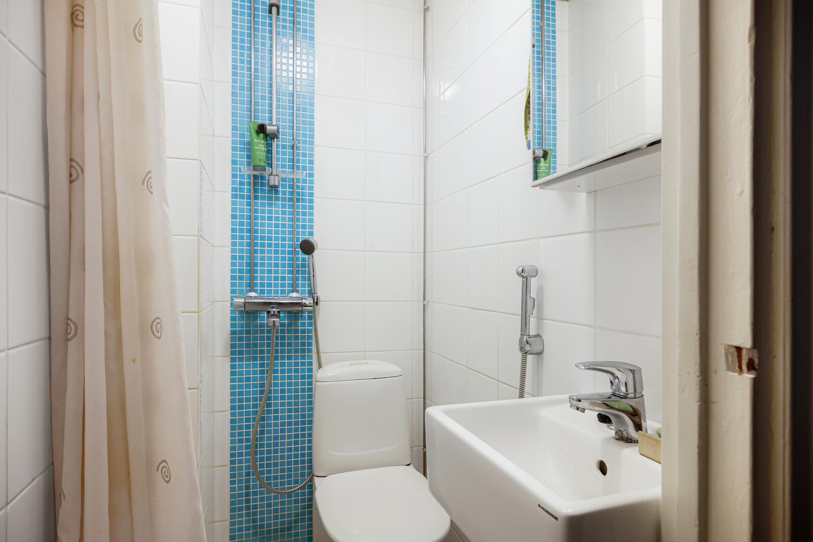 | WC-tilojen kuvaus | Suihku ja peilikaappi, seinät (Kaakeli), lattiat (Laatta) |