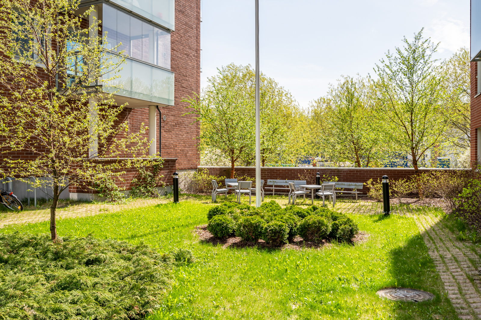 Joukkoliikenne toimii hyvin – bussipysäkit ovat lähellä, ja pikaraitiolinja 15 kulkee aivan lähettyviltä.