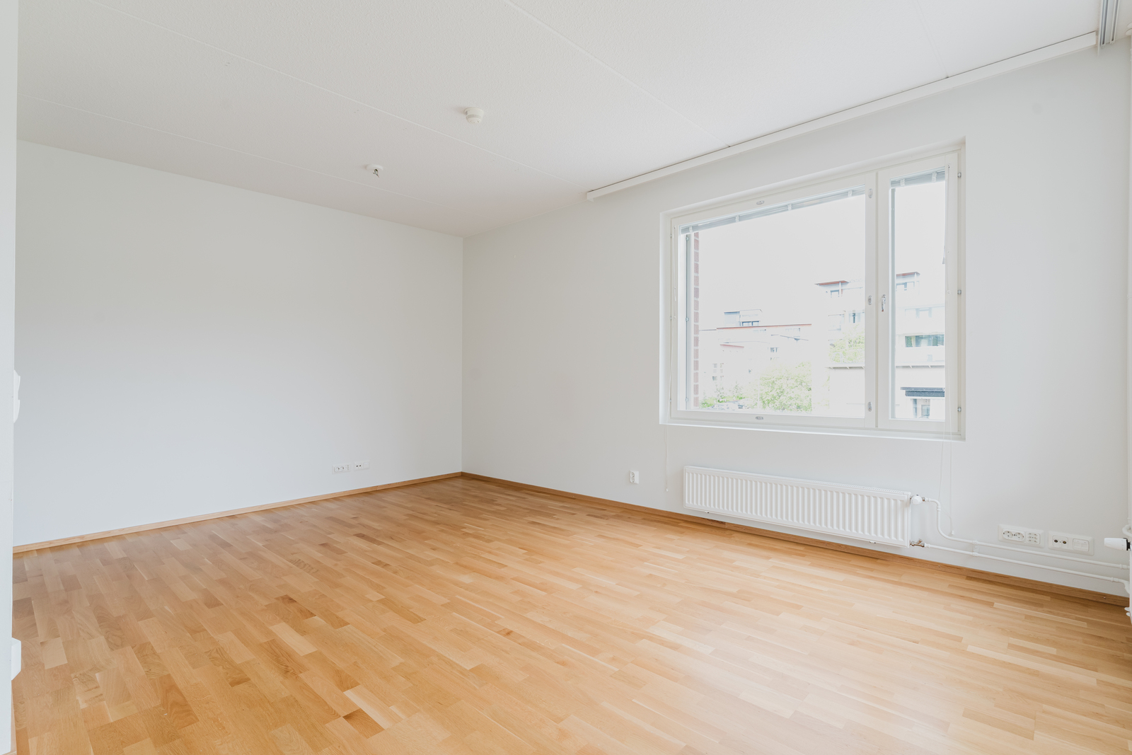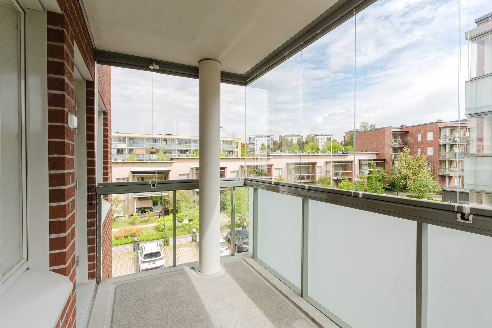 Valoisa ja toimivapohjainen asunto hissitalon kolmannessa kerroksessa. Avara olohuone yhdistyy keittiö- ja ruokailutilaan, ja siitä on käynti tilavalle lasitetulle parvekkeelle. Avokeittiössä on runsaasti säilytys- ja laskutilaa. Kaappitilaa löytyy lisäksi eteisestä ja makuuhuoneista.