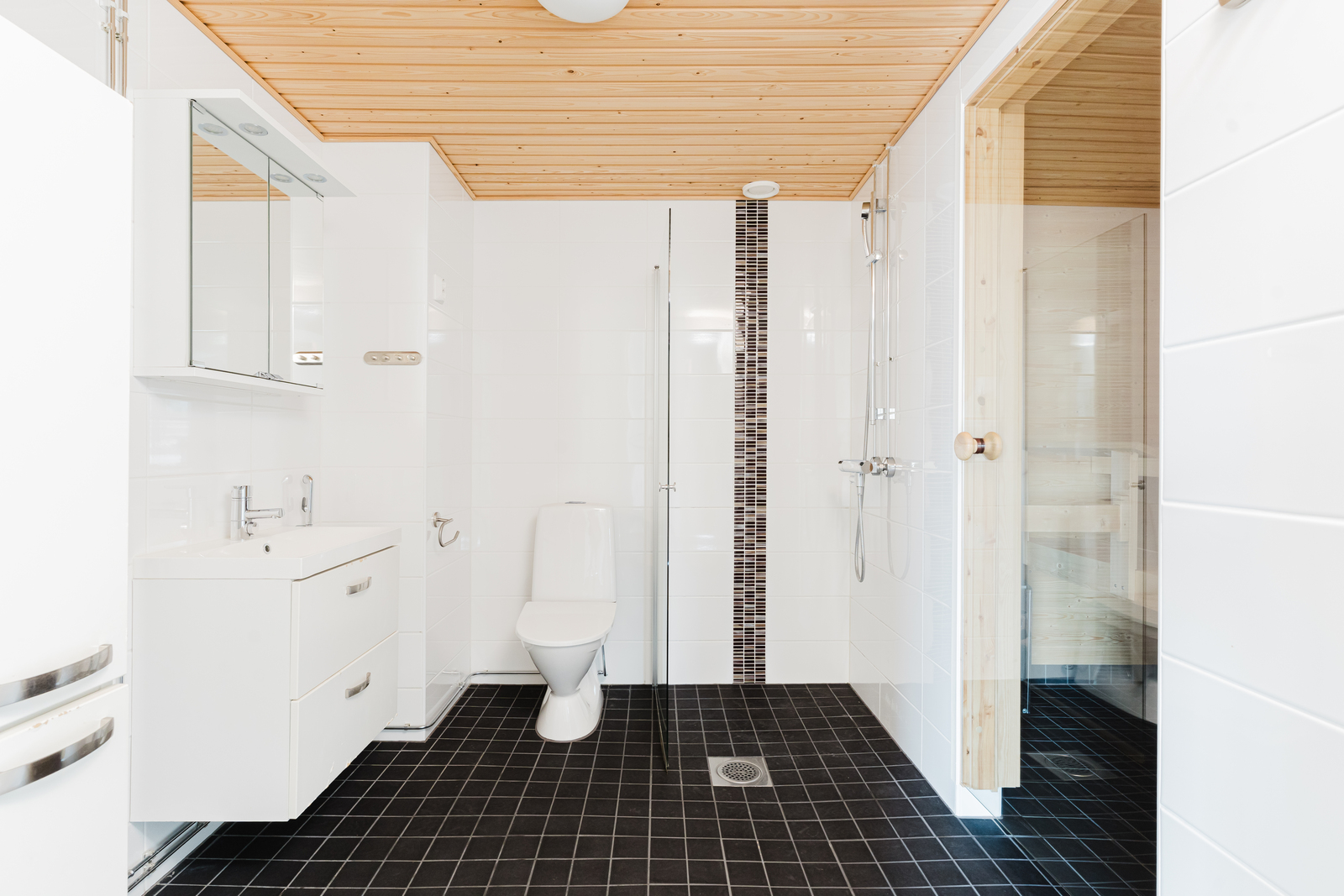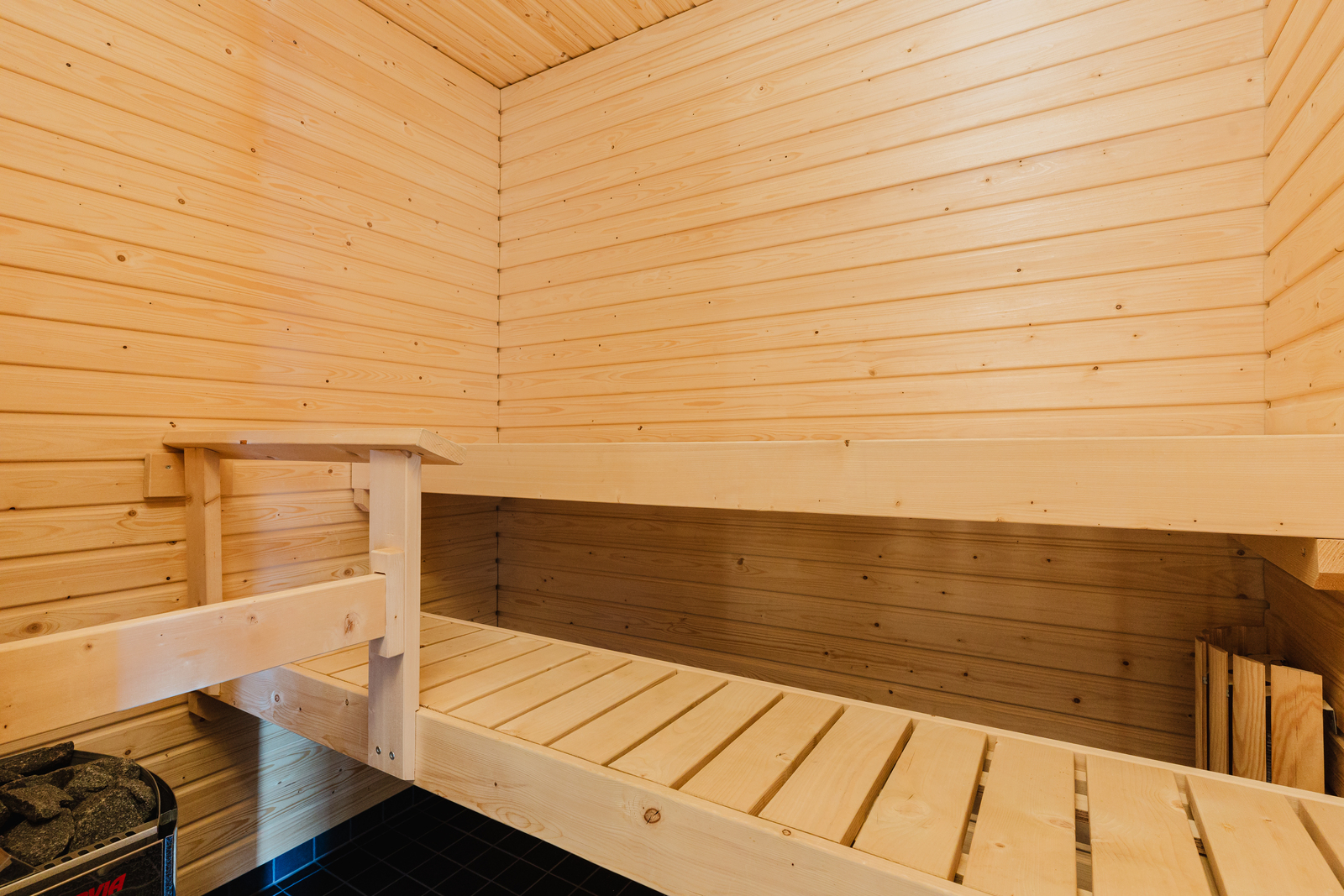 | Saunan kuvaus | Seinät (puu), lattiat (laatta), Sähkökiuas |