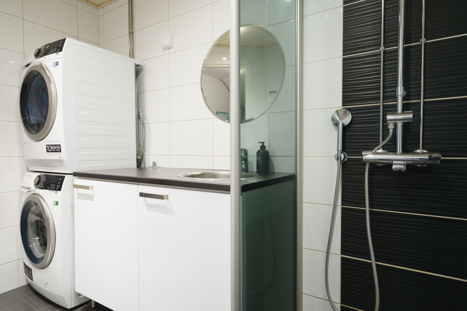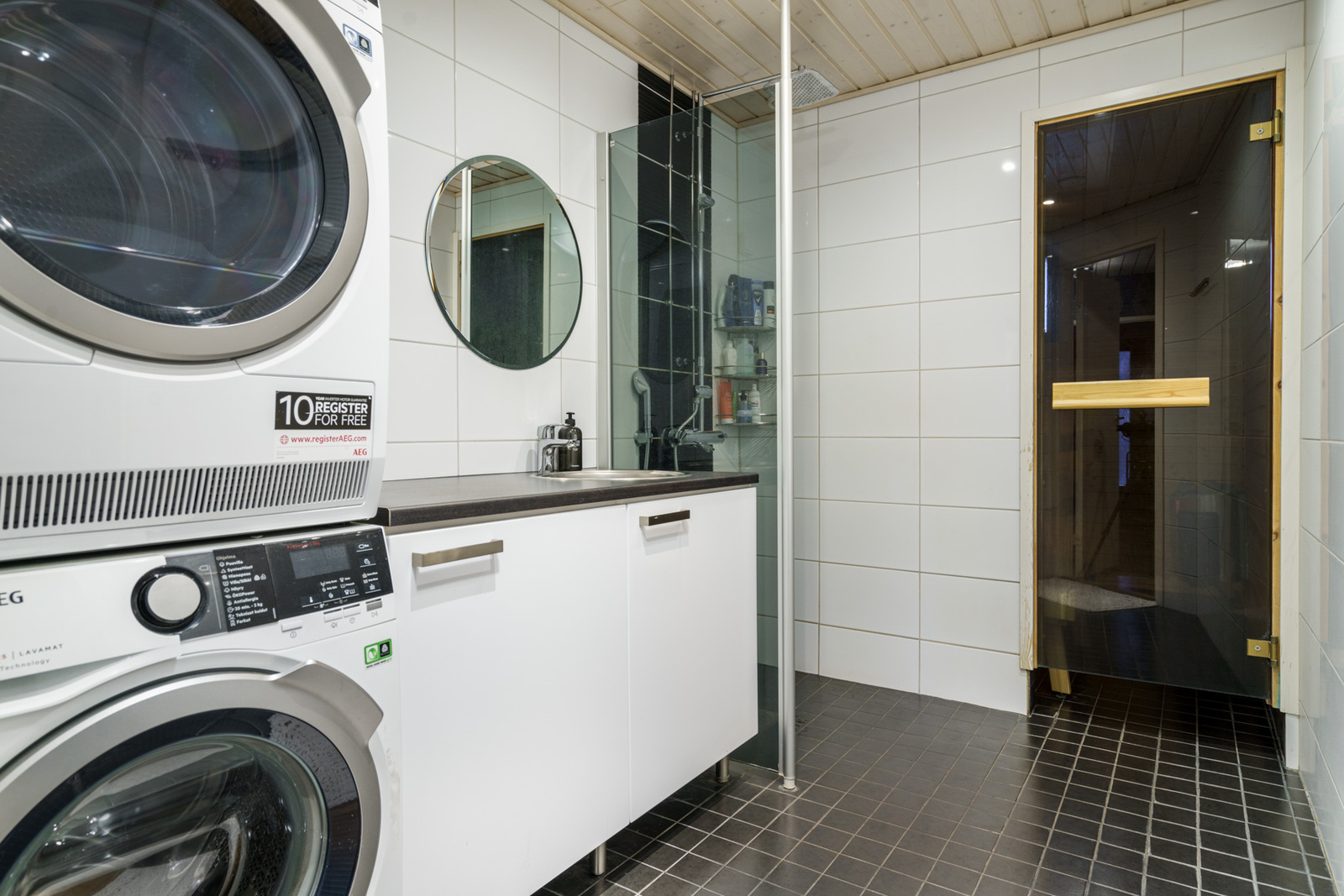 Suihku, pesukoneliitäntä ja lattialämmitys, seinät (kaakeli), lattiat (laatta) |