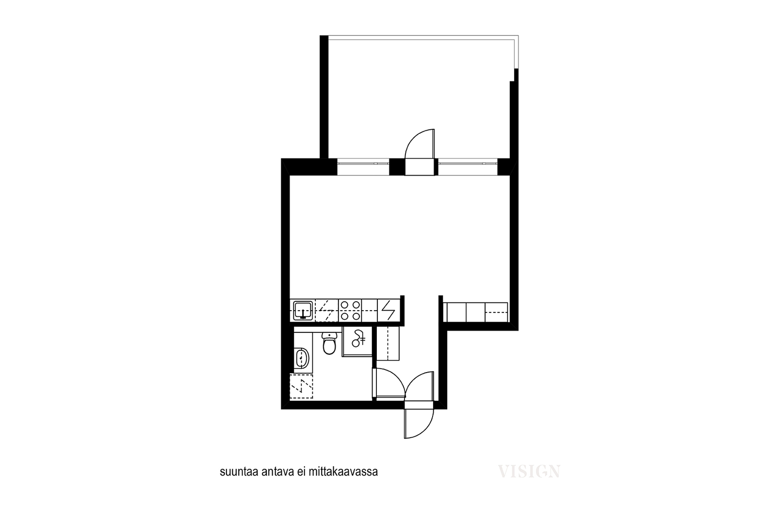 1 h, kt, lasitettu parveke (Yj:n muk. h+kt+alk) |