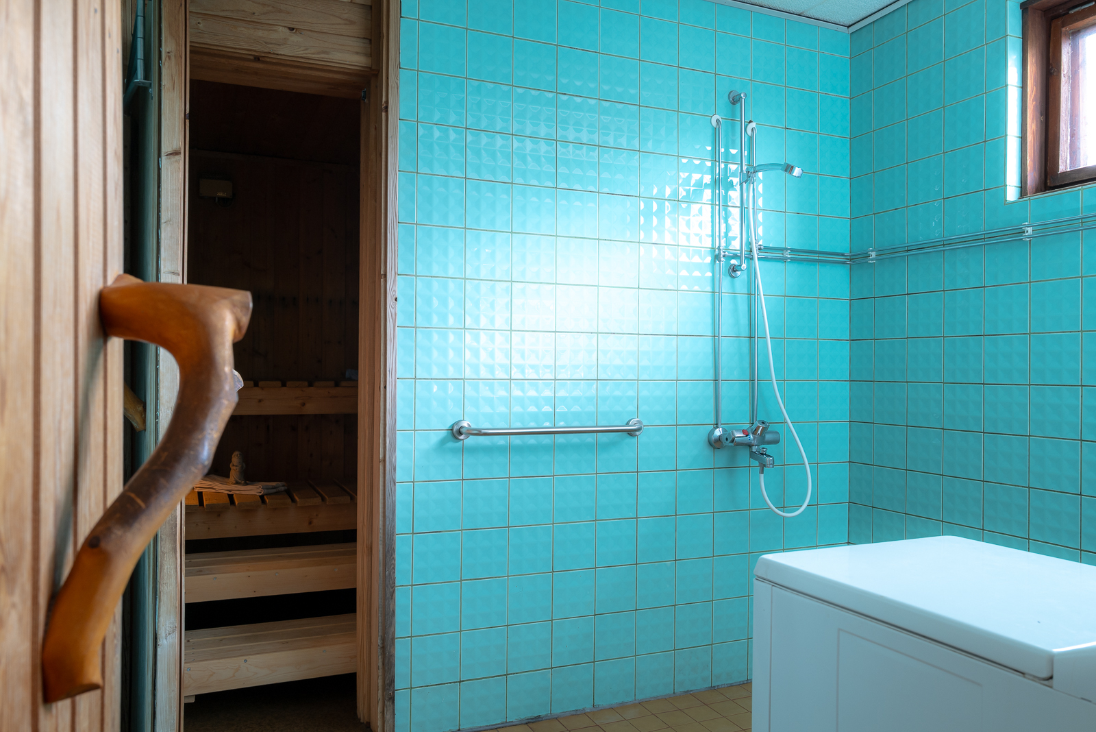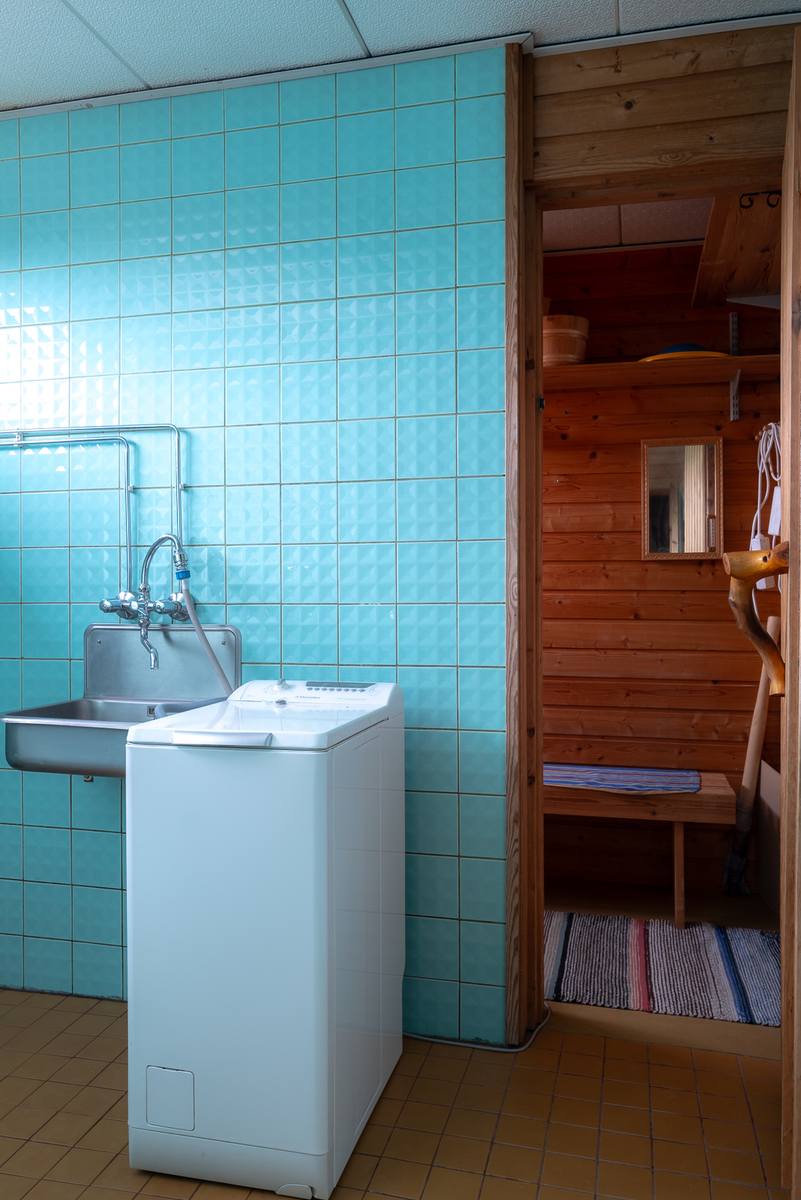 Pesukoneliitäntä, suihku ja kiinteät valaisimet, seinät (kaakeli), lattiat (laatta) |