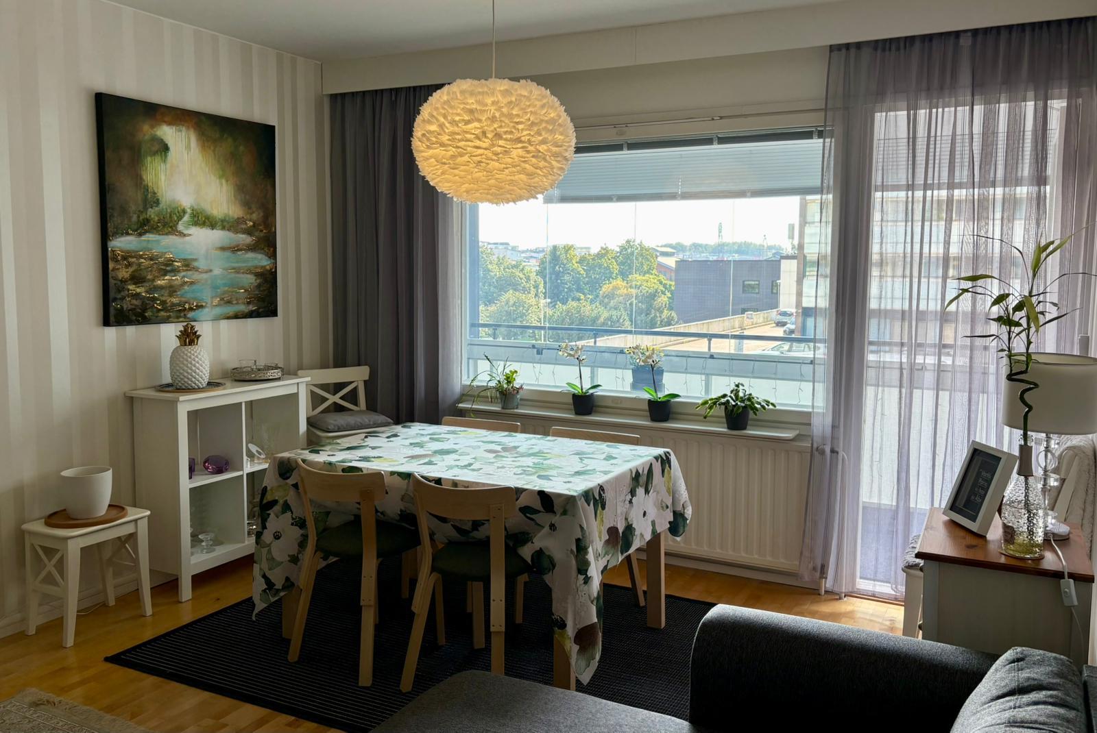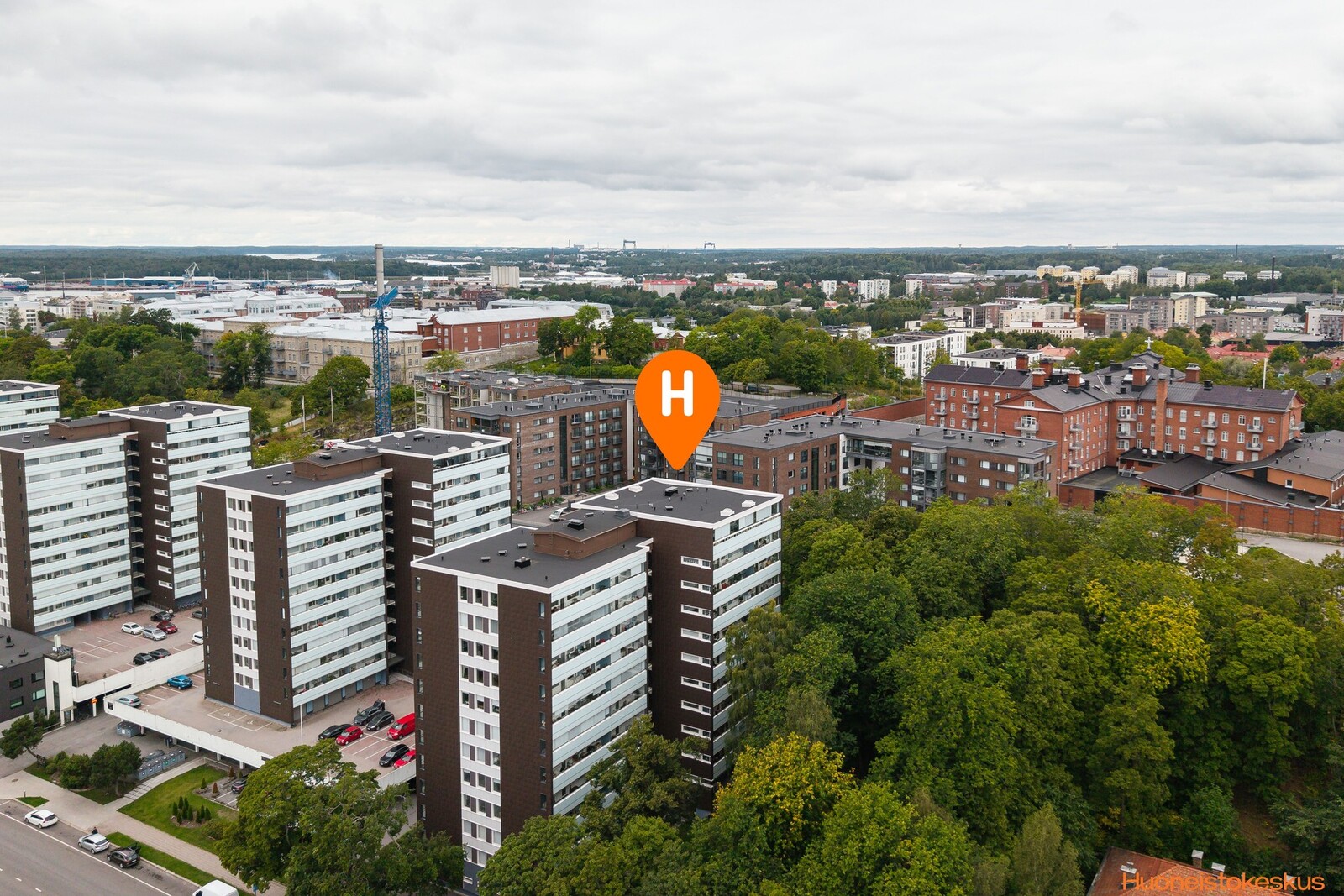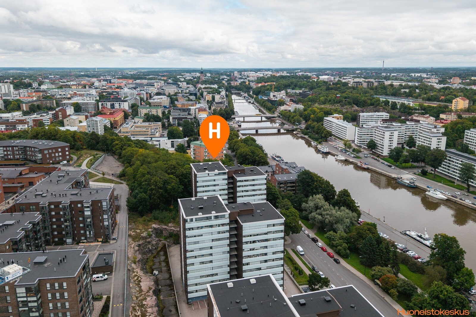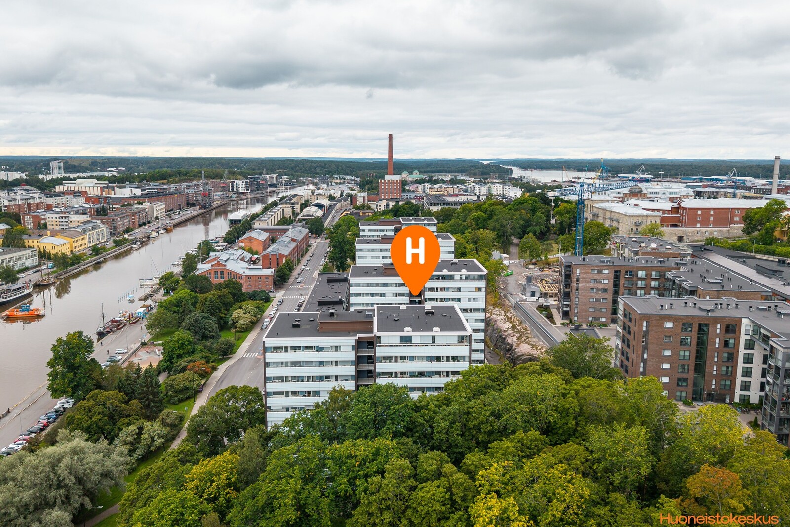 Sijainniltaan asunto on mitä parhaimmalla paikalla! Lähellä keskustaa, rauhallisella alueella Kakolan alapuolella, Föripuiston vieressä. Aurajokivarren ravintola- ja kahvilatarjonta vieressä.
