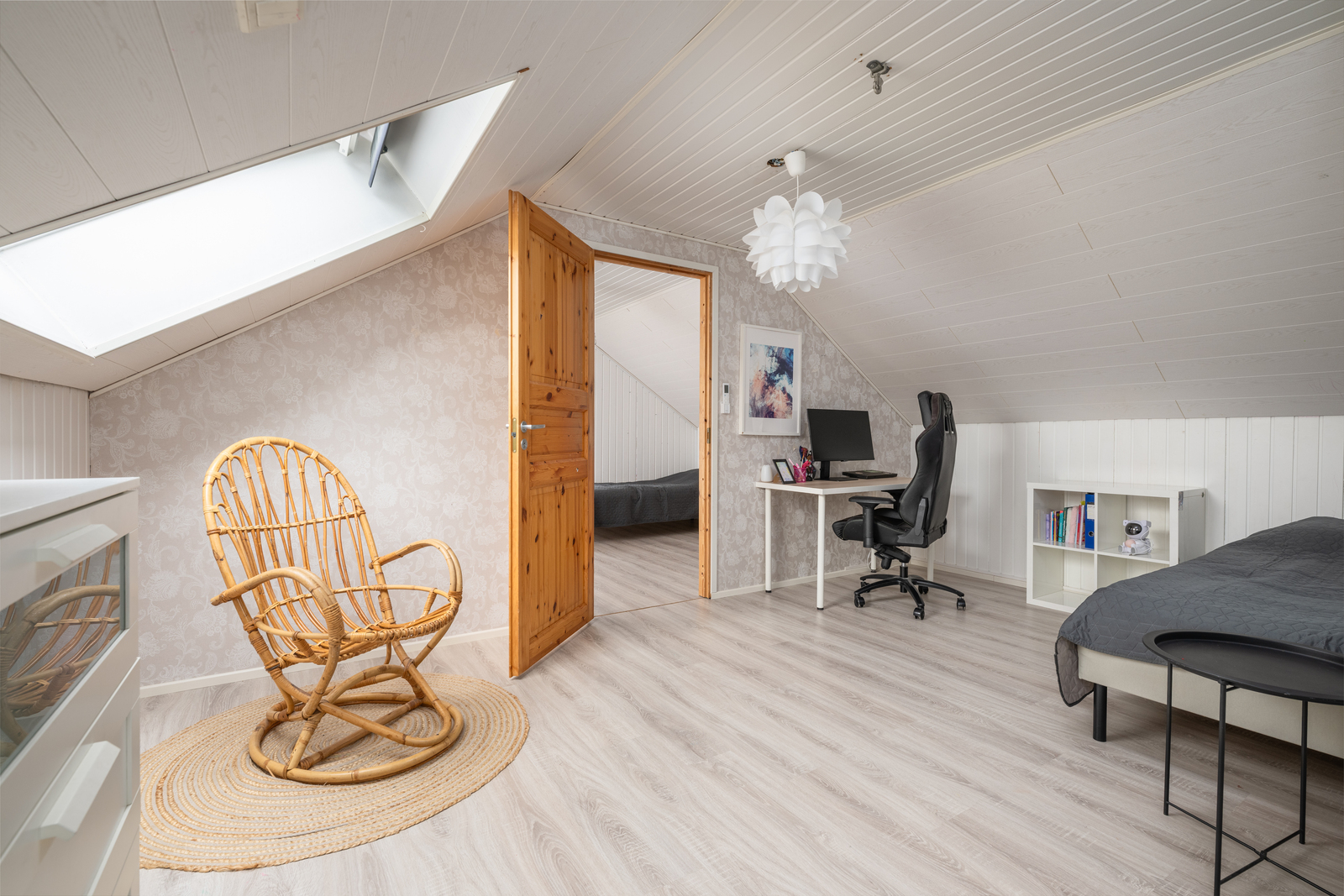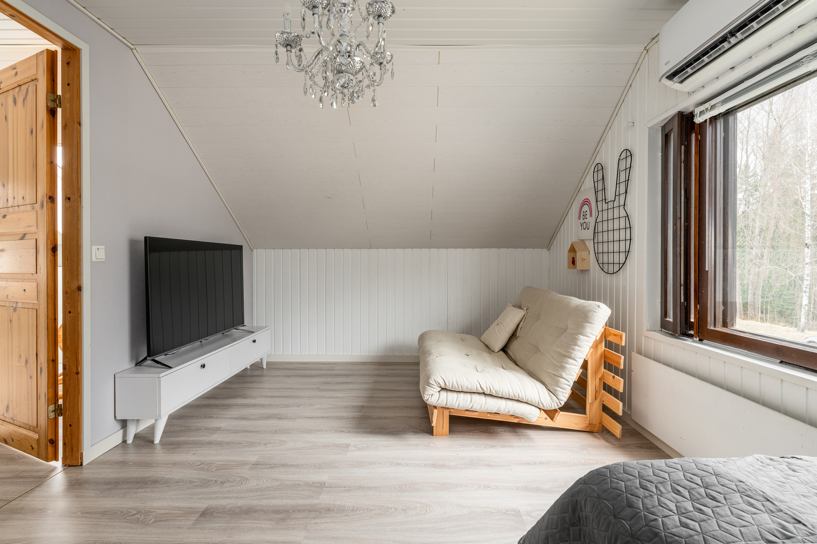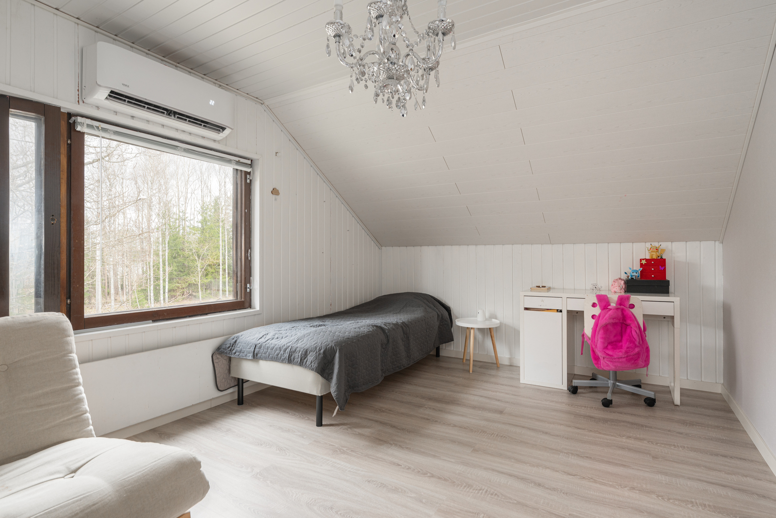 Seinät (maali), lattiat (laminaatti), kolmemakuuhuonetta, joista kaksi ylhäällä. |