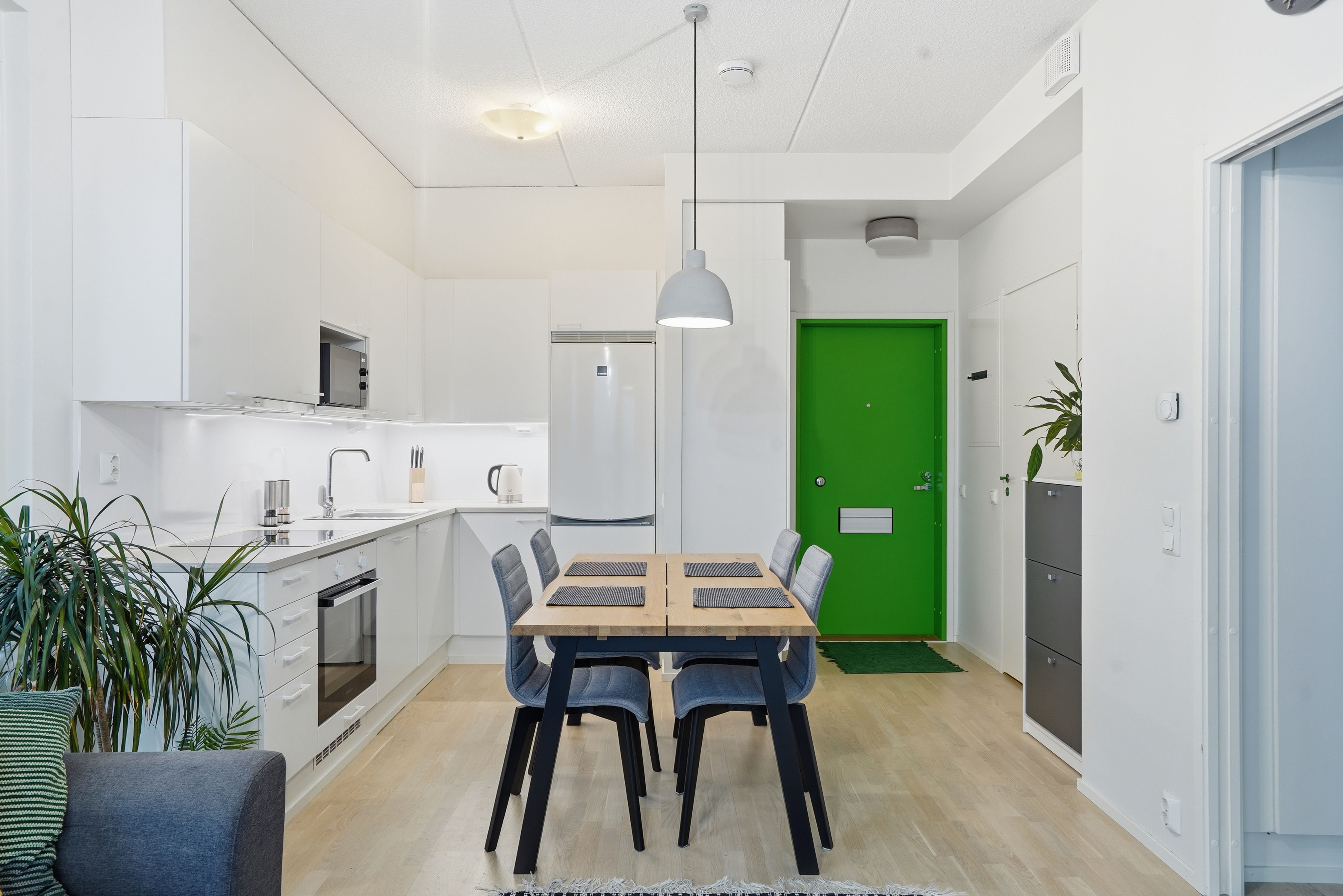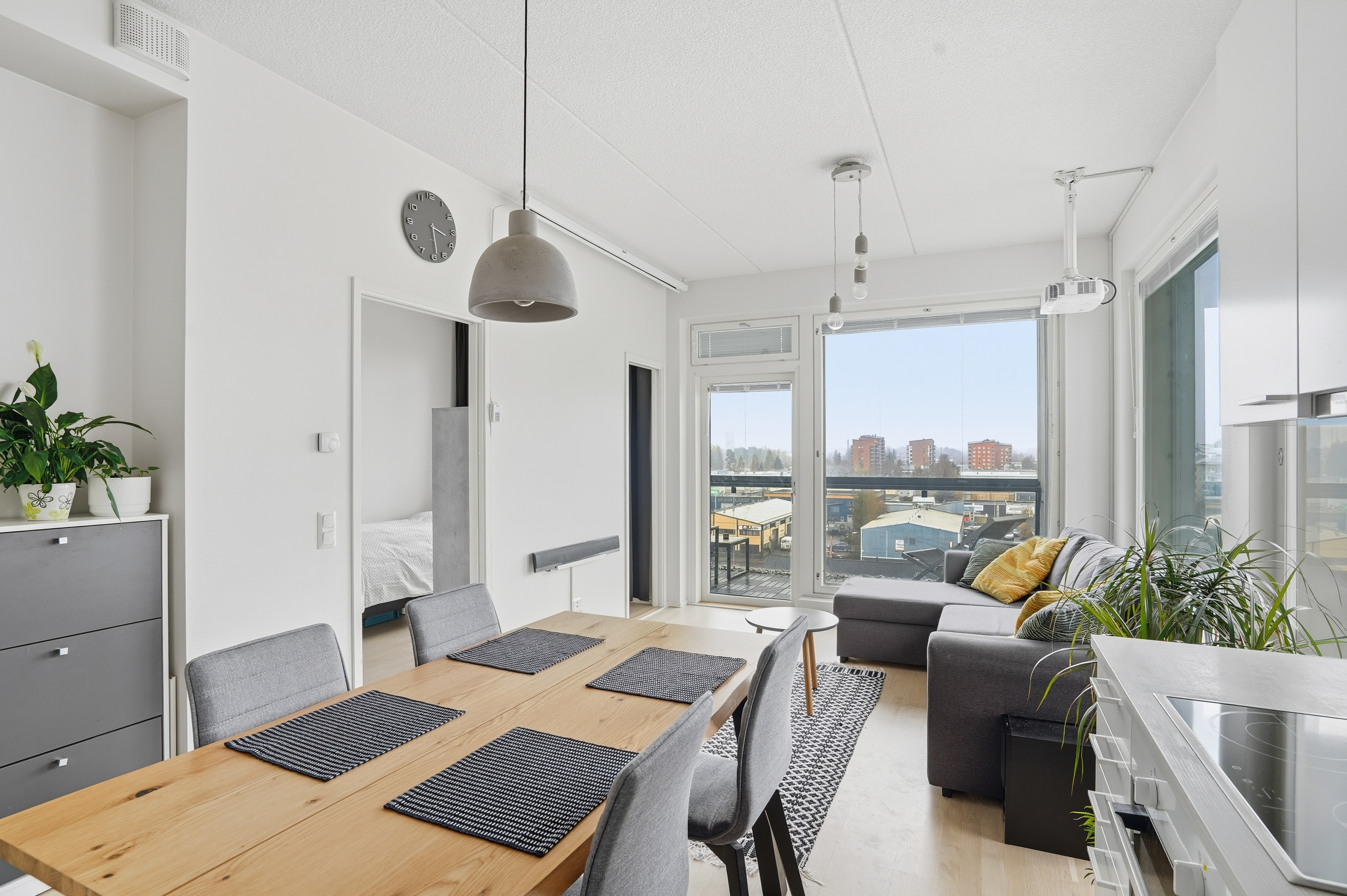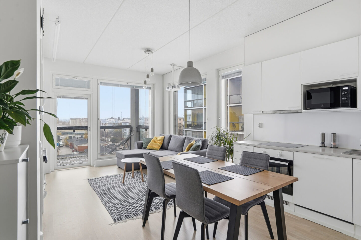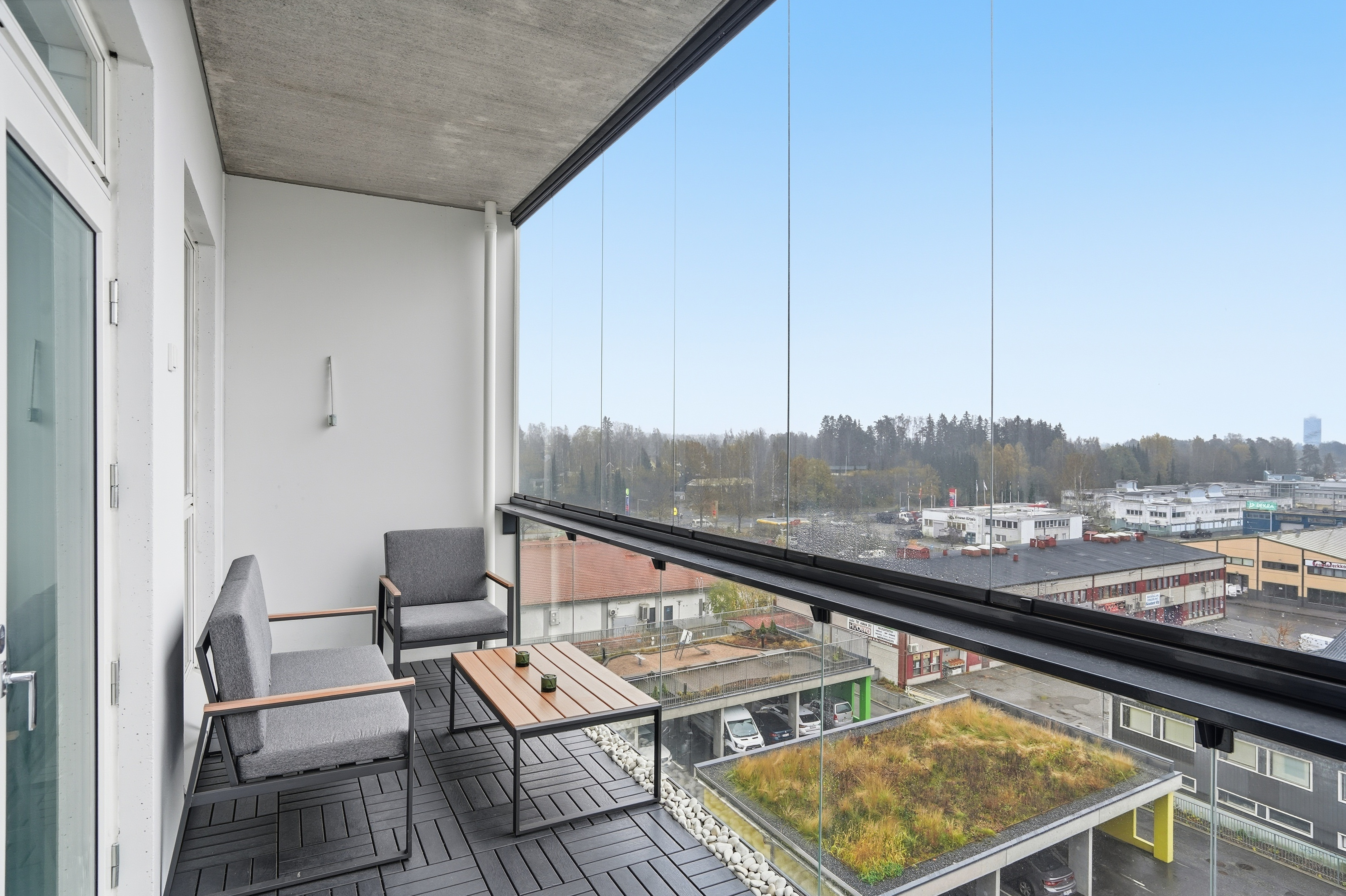 Asunnossa on avara avokeittiö, joka yhdistyy luontevasti olohuoneeseen, täydellinen paikka niin arkeen kuin yhdessäoloon. Lasitettu parveke tuo lisätilaa ympäri vuoden ja tarjoaa mukavan paikan nauttia kahvihetkistä tai auringonpaisteesta.
