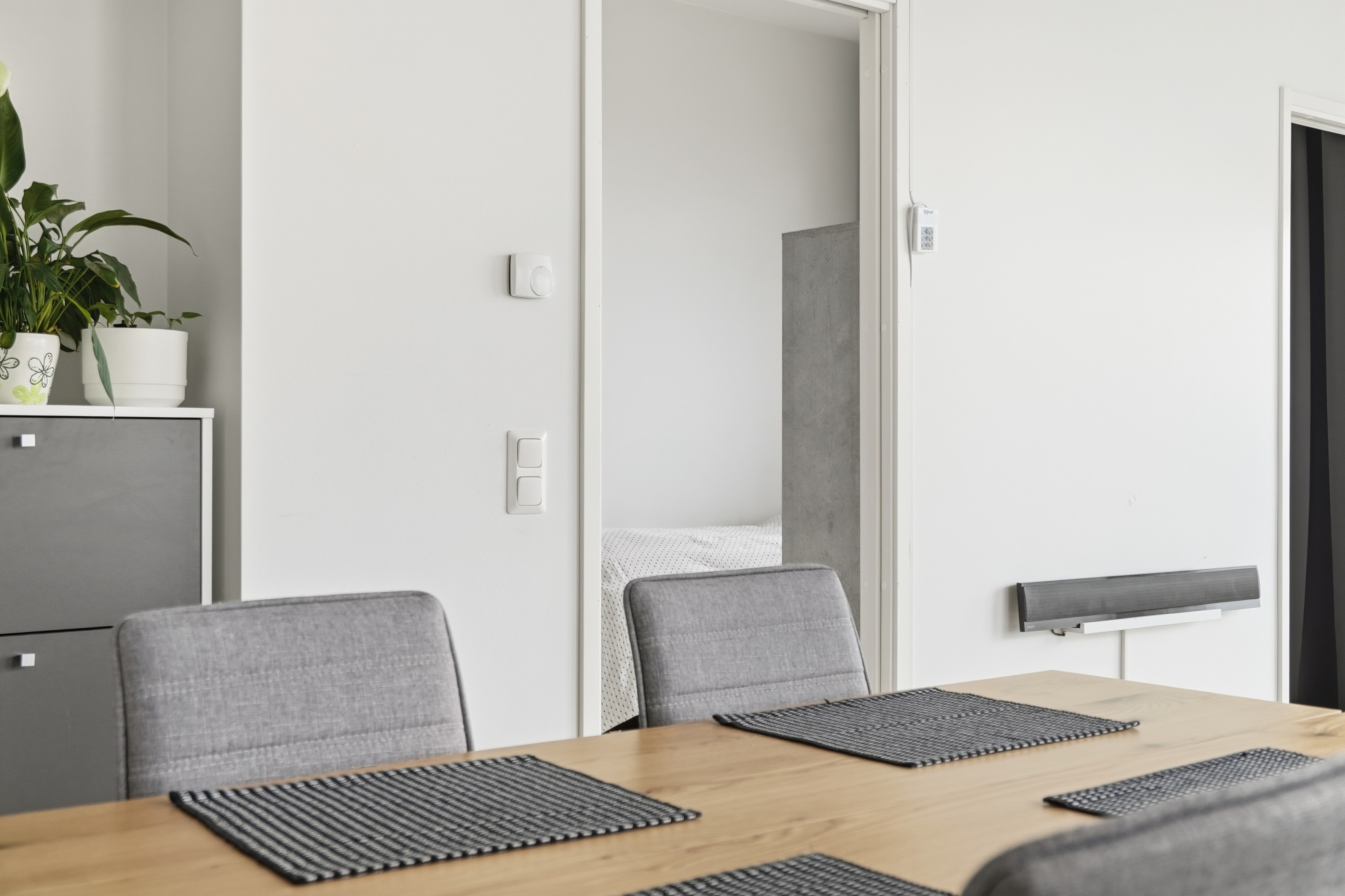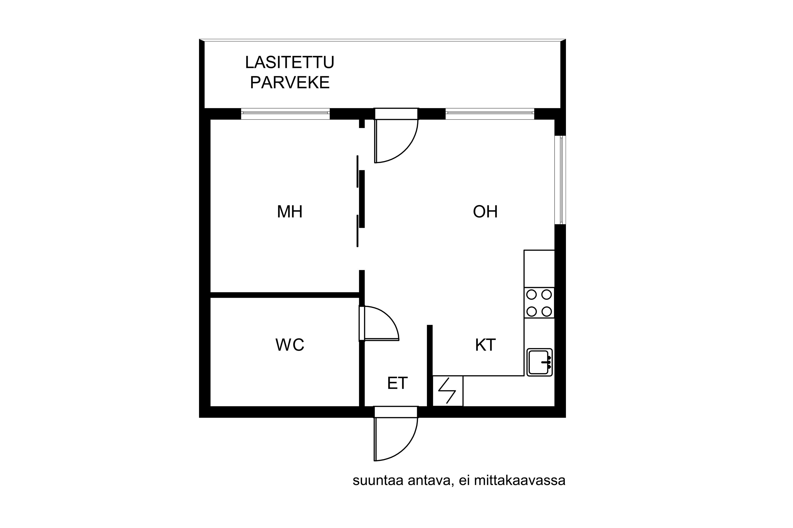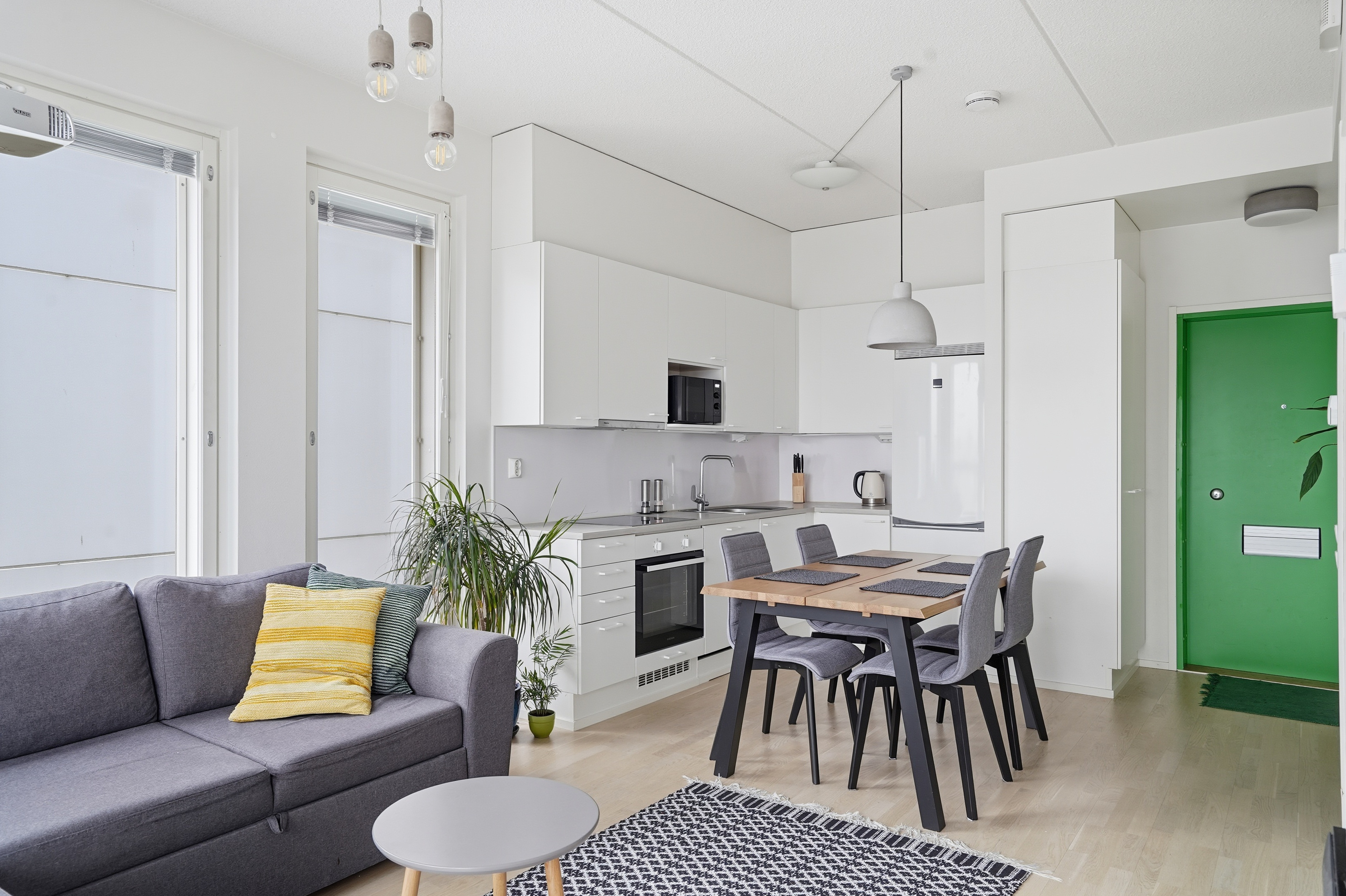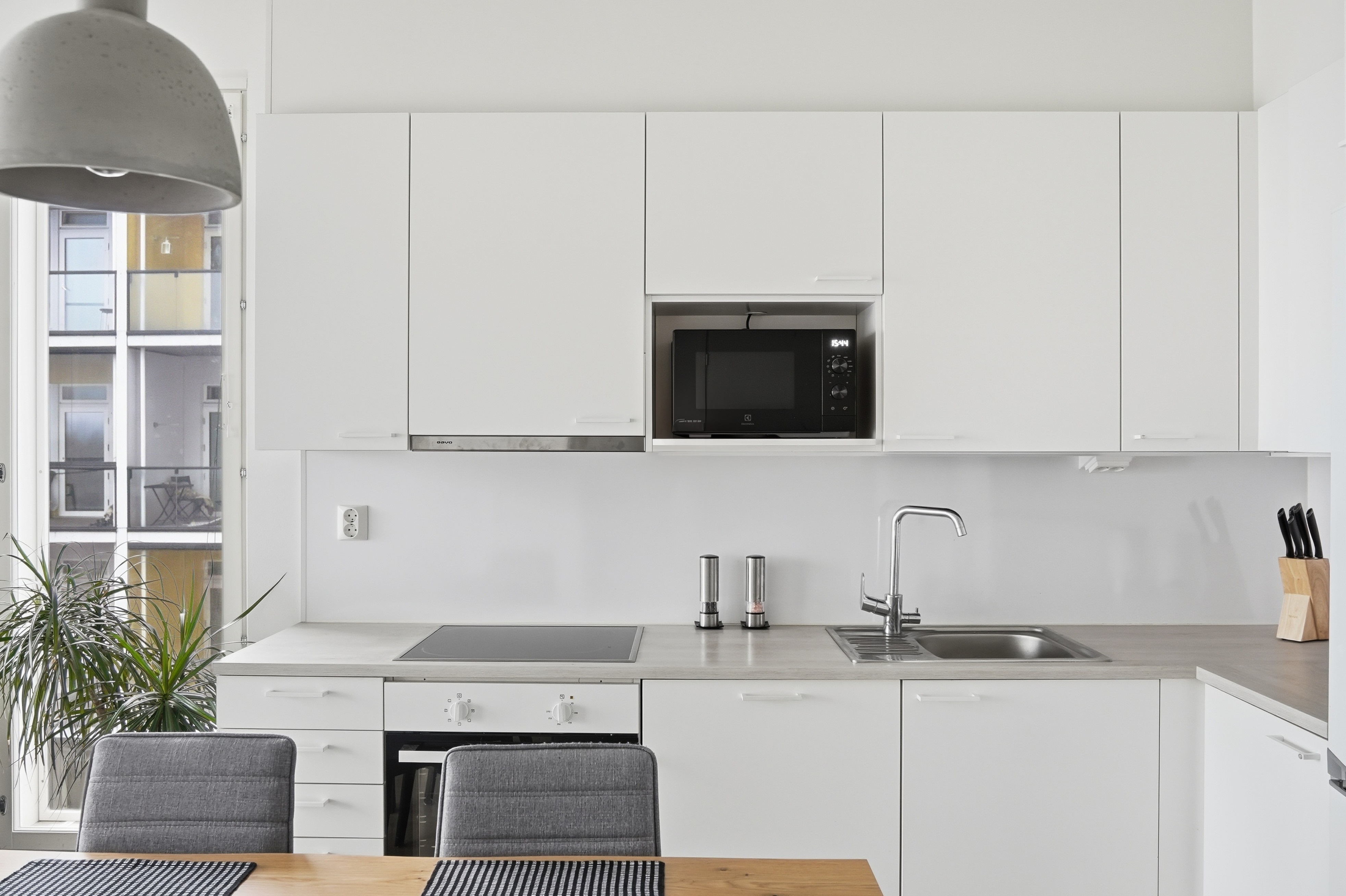Asunnossa on avara avokeittiö, joka yhdistyy luontevasti olohuoneeseen, täydellinen paikka niin arkeen kuin yhdessäoloon. Lasitettu parveke tuo lisätilaa ympäri vuoden ja tarjoaa mukavan paikan nauttia kahvihetkistä tai auringonpaisteesta.