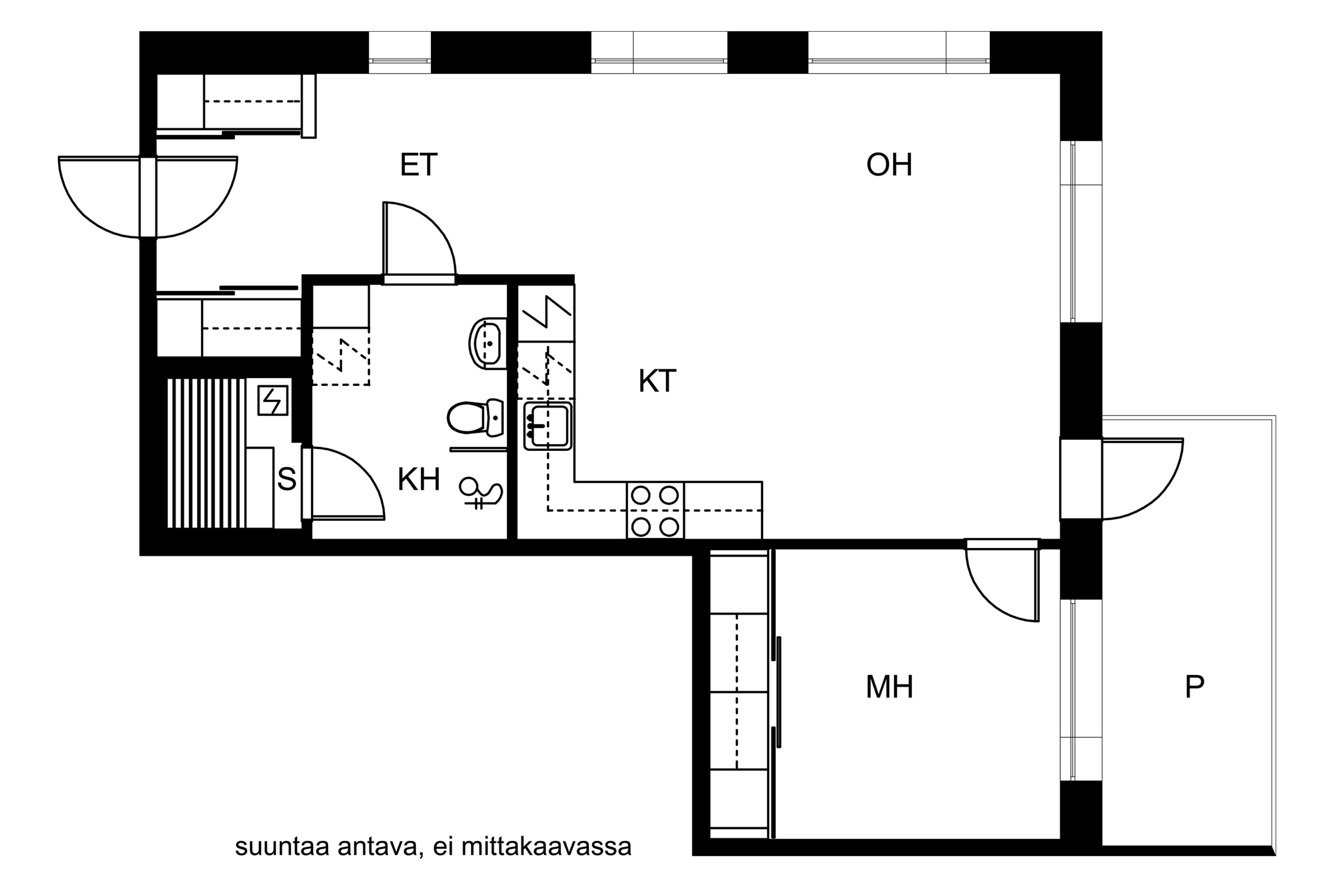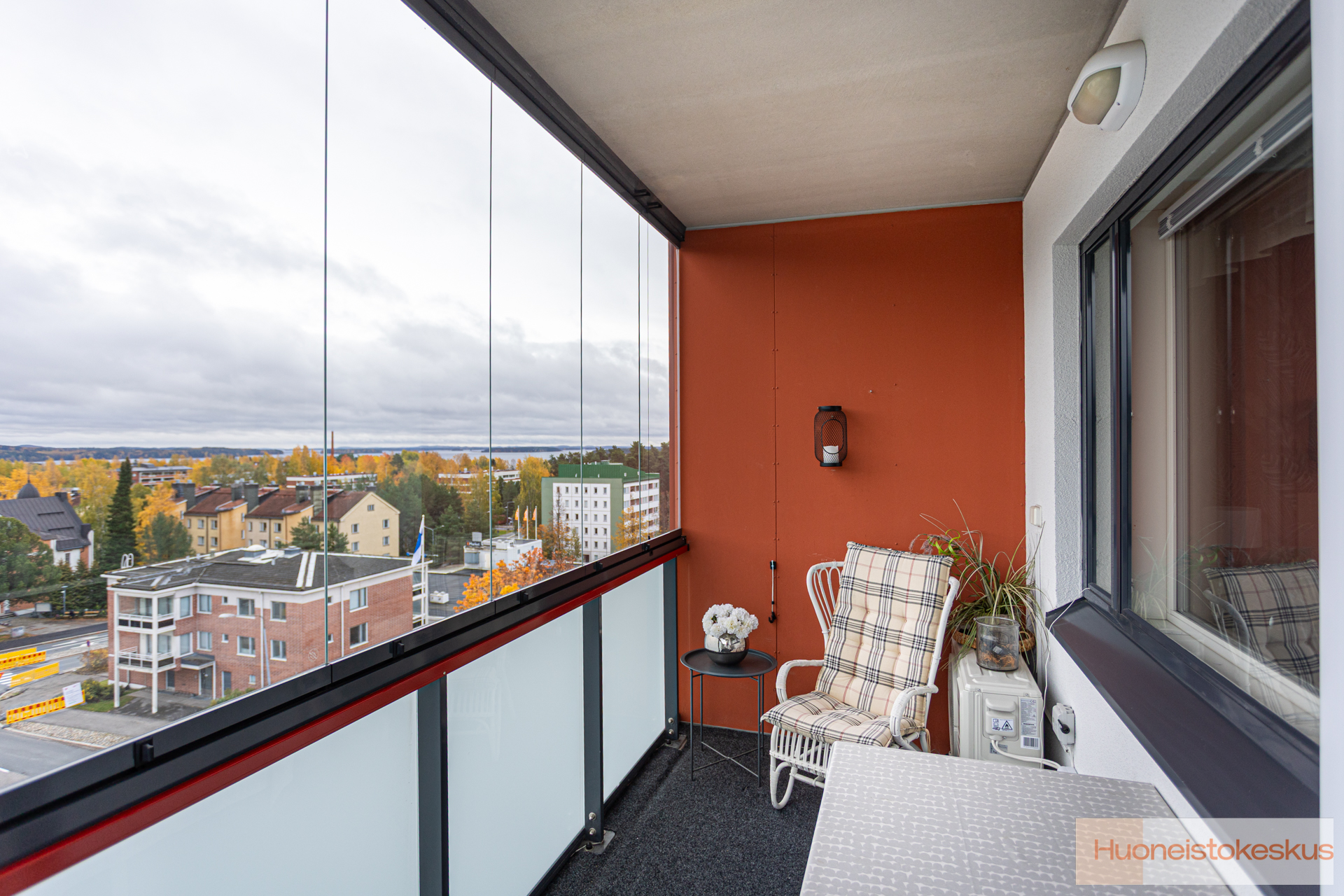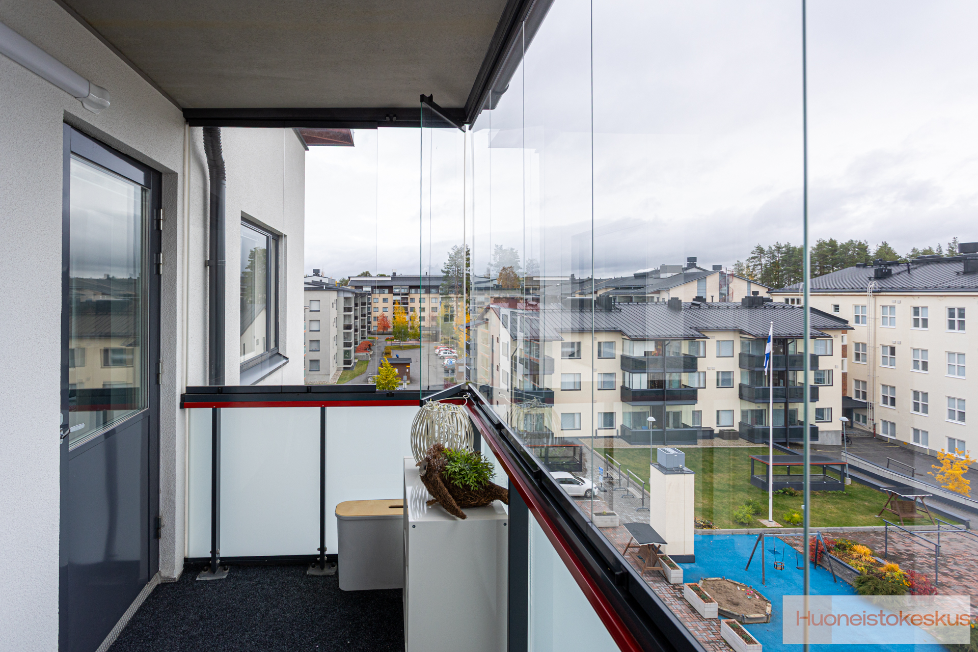 Avokeittiö on remontoitu tyylikkäästi vuonna 2023, ja se on varusteltu erinomaisesti: erillinen uuni, jääkaappipakastin, astianpesukone sekä induktioliesi tekevät arjesta sujuvaa. Olohuoneessa on viilentävä ilmalämpöpumppu (asennettu 2023), ja sieltä on käynti itään suuntautuvalle lasitetulle parvekkeelle – täydellinen paikka aamukahville ja rentoutumiselle.