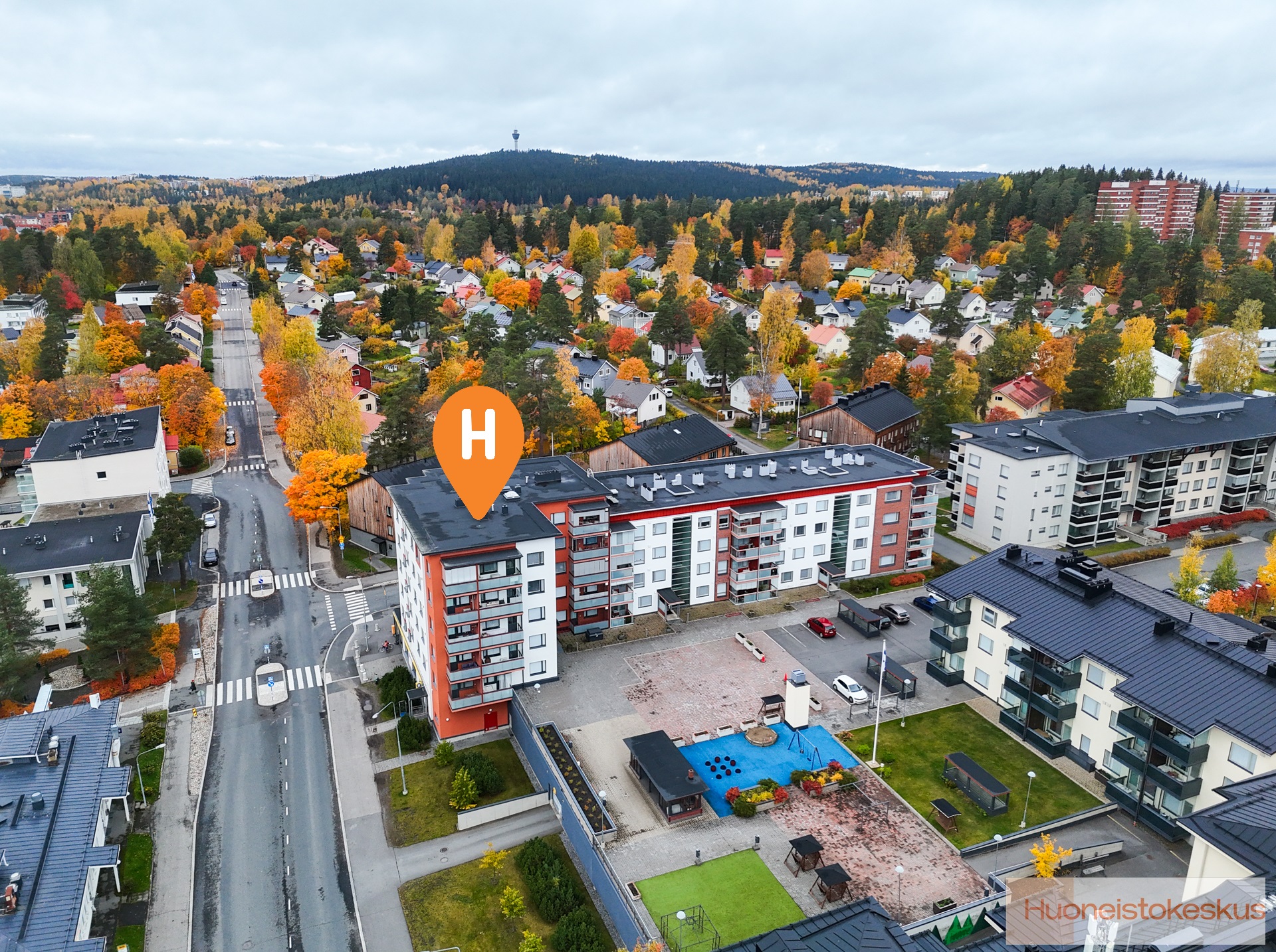 Sijainti on erinomainen – talon alakerrassa toimii R-kioski, jossa myös postipalvelut. Vieressä on ruokakauppa, lounasravintoloita ja monipuoliset harrastusmahdollisuudet. Keskustaan on lyhyt matka, liikenneyhteydet ovat sujuvat ja pyöräilyreitit kulkevat aivan vierestä. Tämä koti sopii erinomaisesti niin yksinasujalle kuin pienelle perheellekin, jotka arvostavat modernia asumista ja palveluita lähellä.