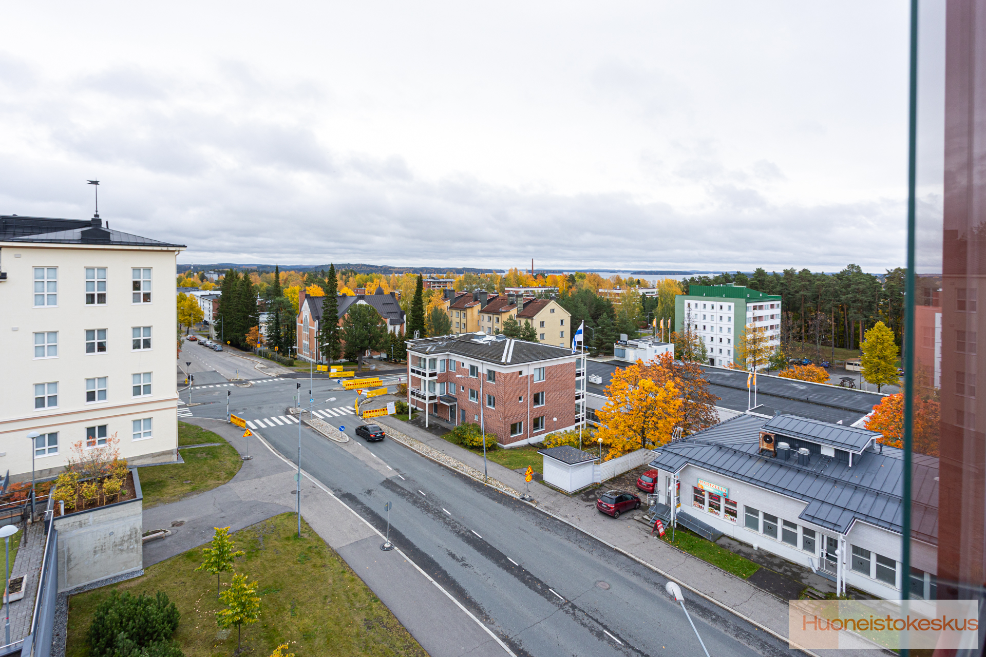 Tämä valoisa ja tilava kulmahuoneisto Kuopion Männistössä tarjoaa modernia asumismukavuutta, laadukkaita materiaaleja ja upeat kaupunkinäkymät. Asunto sijaitsee vuonna 2015 valmistuneen talon ylimmässä kerroksessa, josta avautuvat näkymät, joista pilkistää myös Kallavesi.