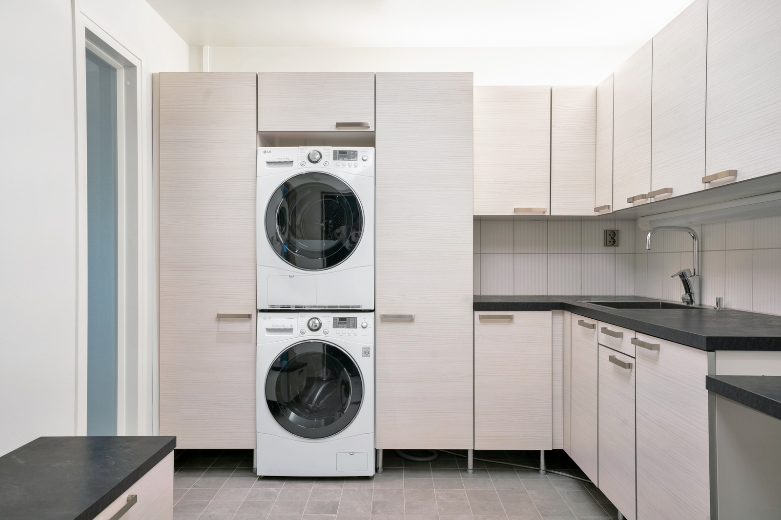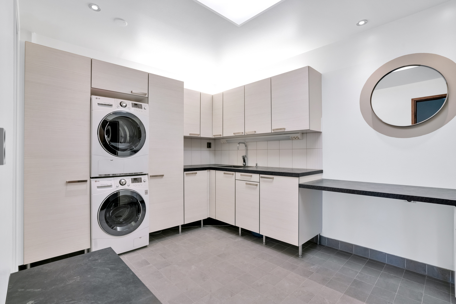 Silityspöytä/taso, pesukoneliitäntä, pesuallas, kurapiste, pyykkikaapit, lattiakaivo, pöytätaso, keskuspölynimuri ja lattialämmitys, lattiat (laatta), seinät (maali) |