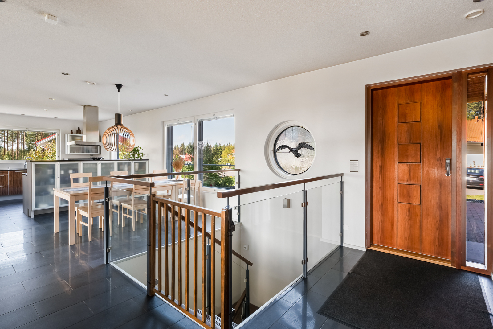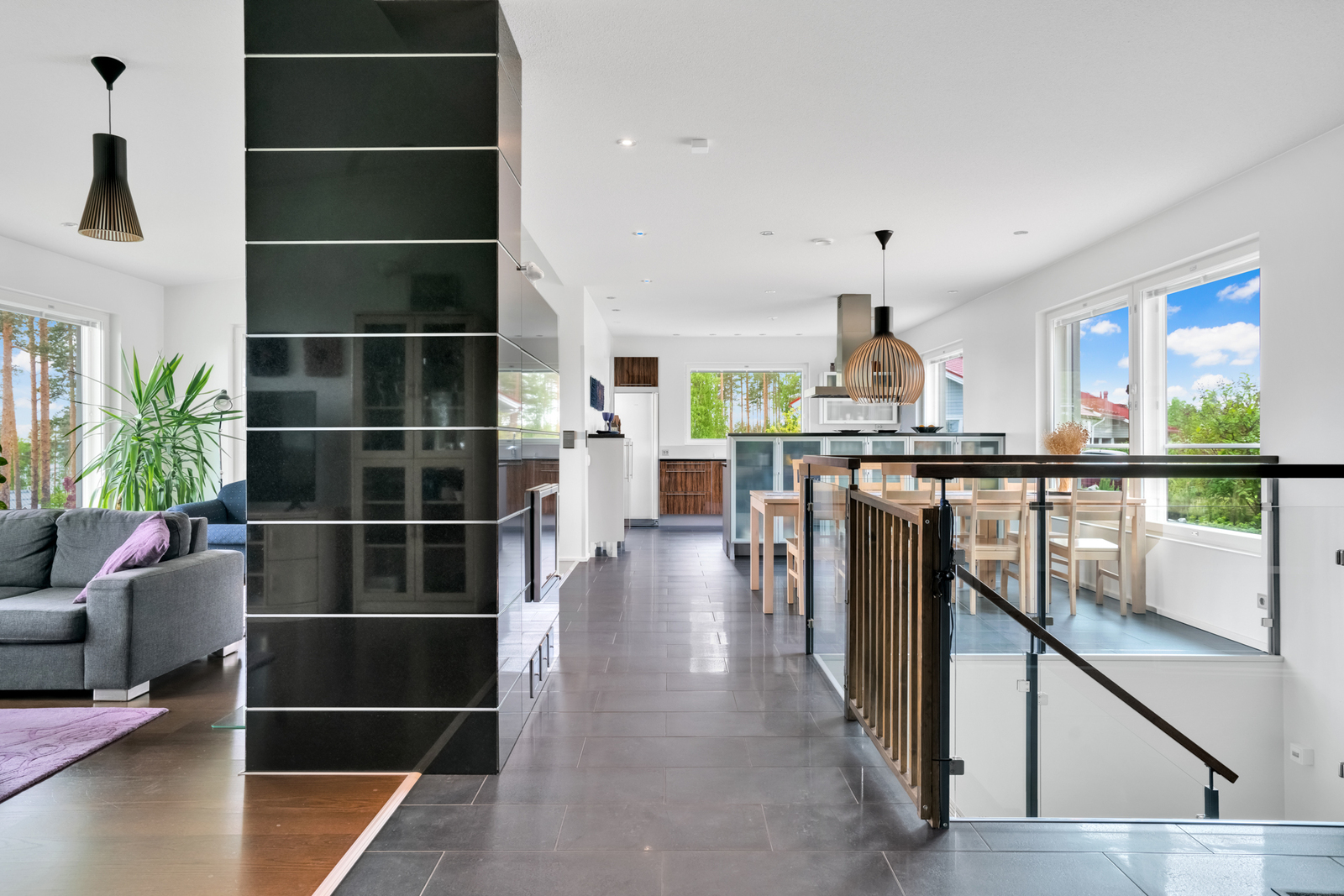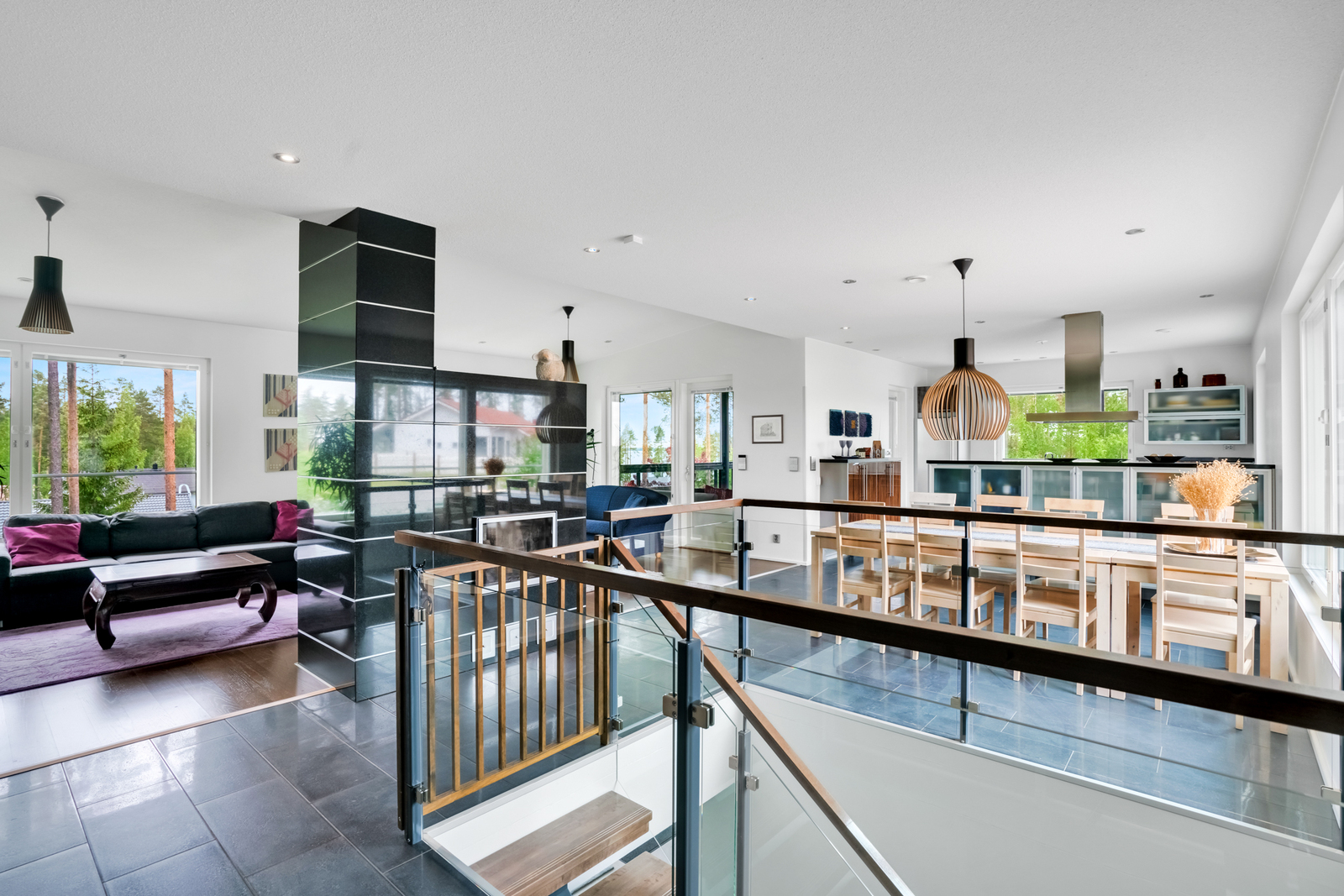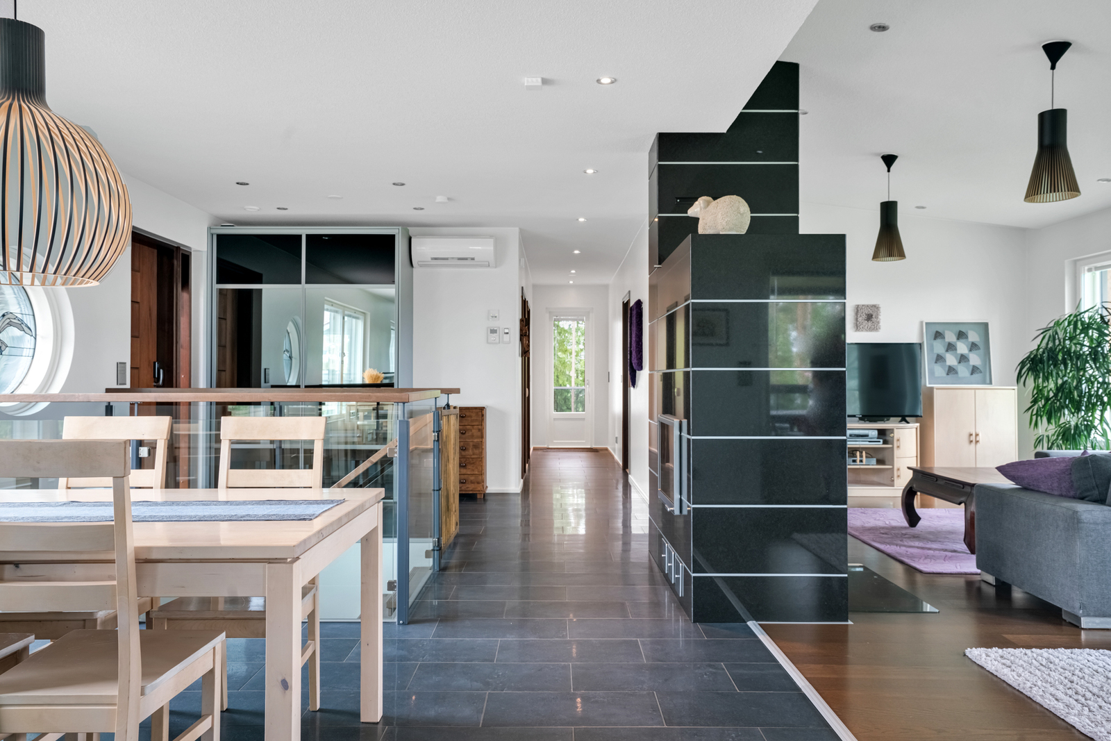 Talossa on KNX-älytalon ohjausjärjestelmä ja sähköinen lukitusjärjestelmä Abloy Control+.