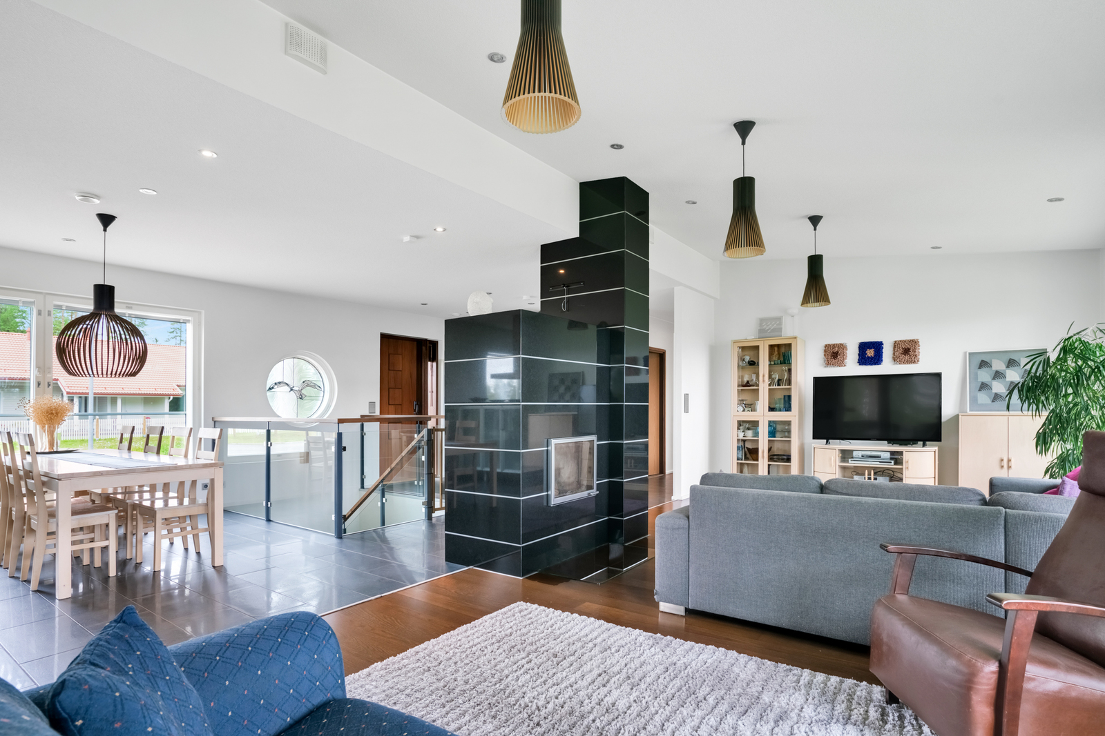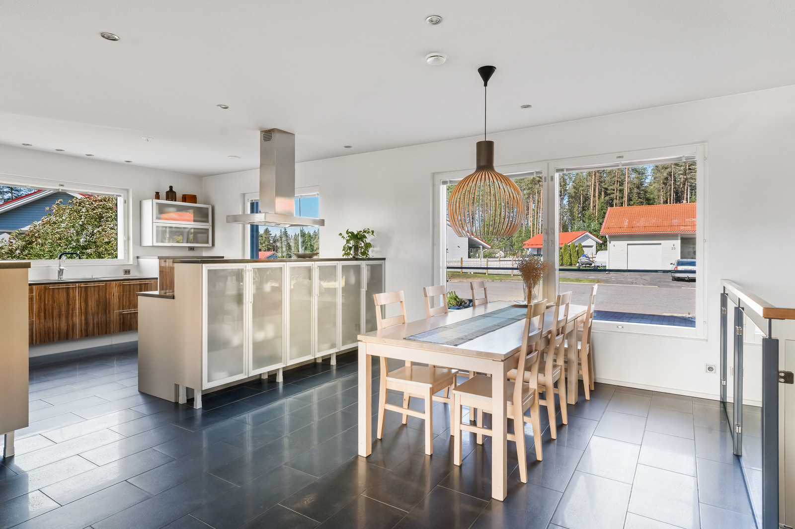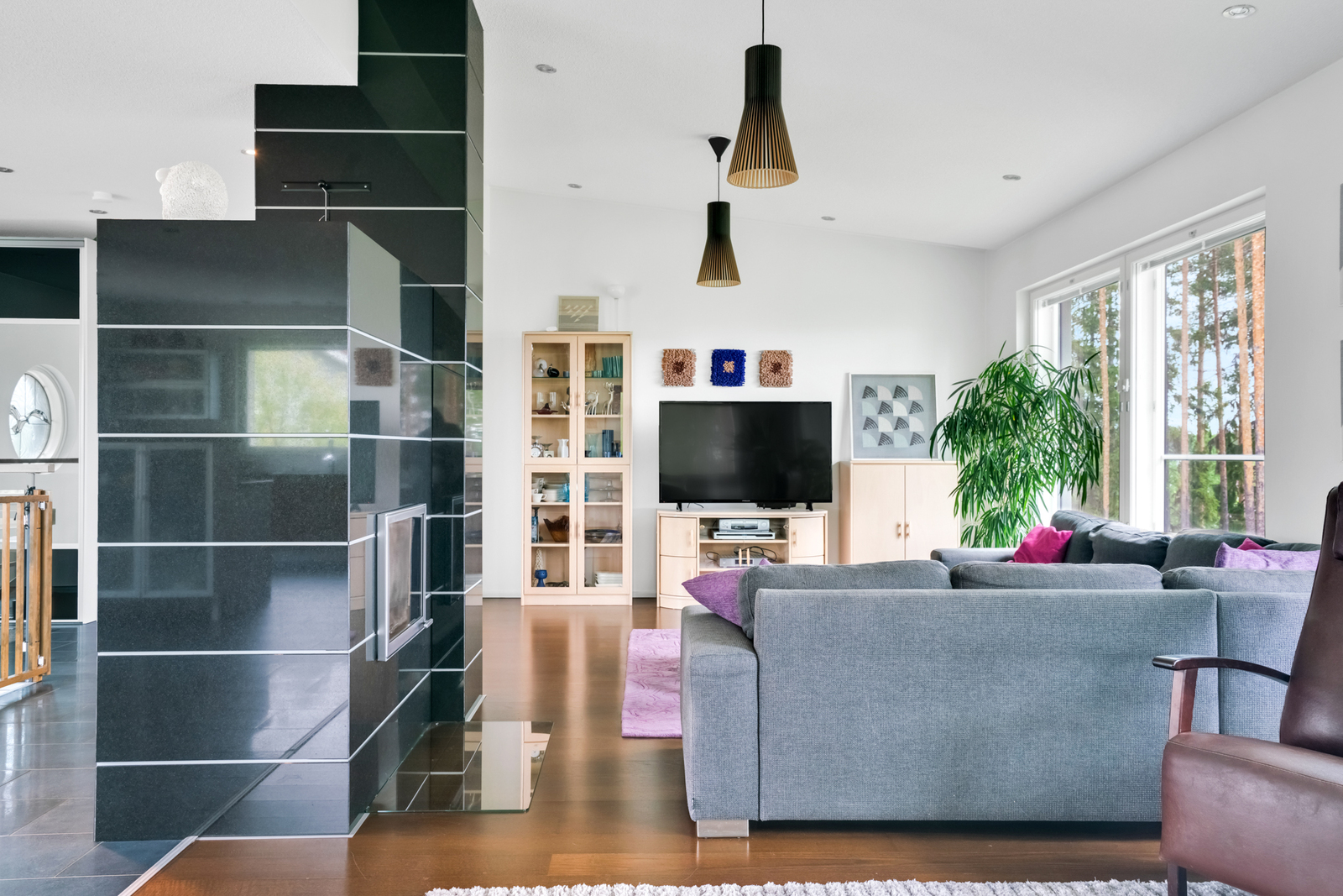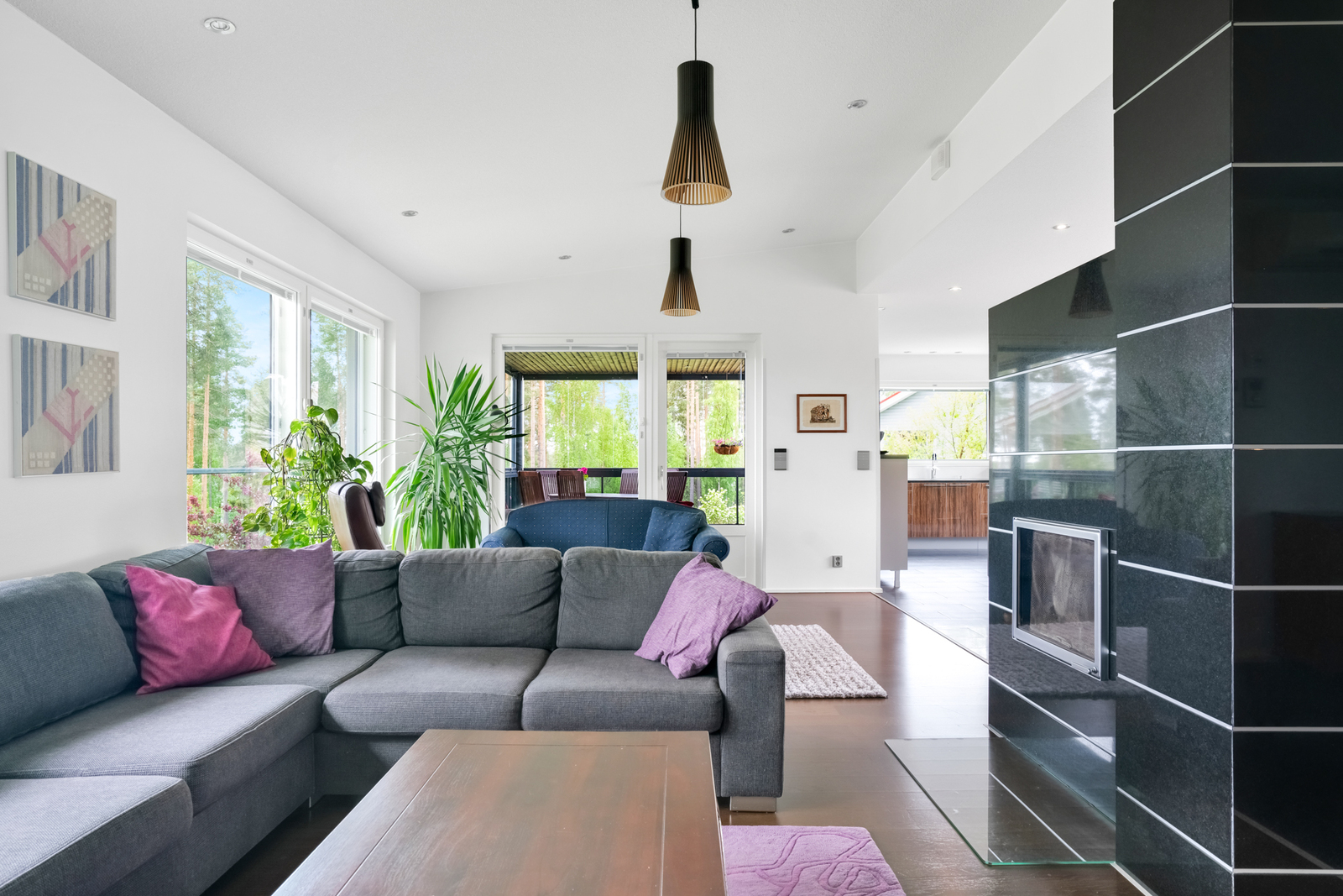 Maalämpö, koneellinen ilmanvaihto LTO:lla, varaava takka ja alakerrassa takkavaraus. Kiinteistössä on KNX-älytalon ohjausjärjestelmä.