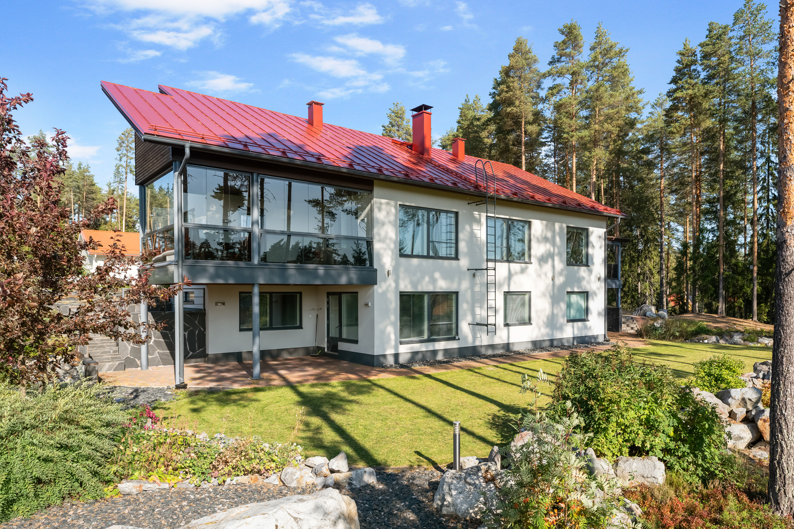 Uniikki, arkkitehdin piirtämä, laadukkaasti vuonna 2012 rakennettu sekä hyvin varusteltu Lammin kivitalo avaralla pohjaratkaisulla kahdessa tasossa. Olohuoneen ja ruokailutilan vieressä iso katettu ja lasitettu terassi, joista näkymä Pyhäselälle.