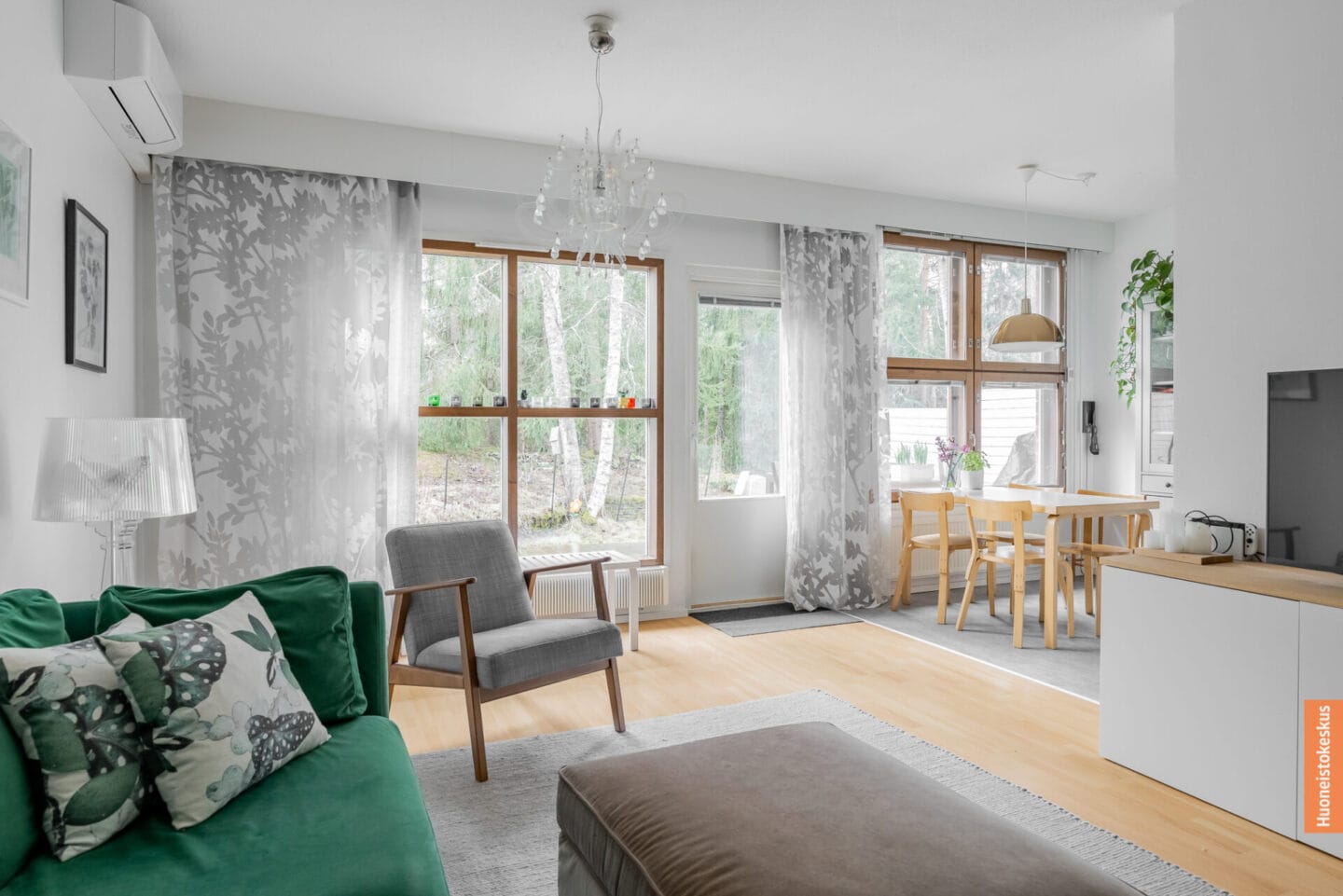 | Olohuoneen kuvaus | Seinät (lasikuitutapetti), lattiat (laminaatti) |