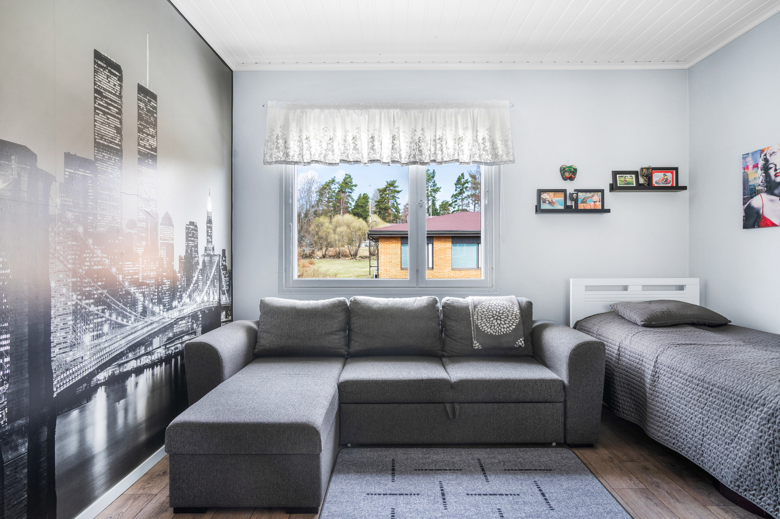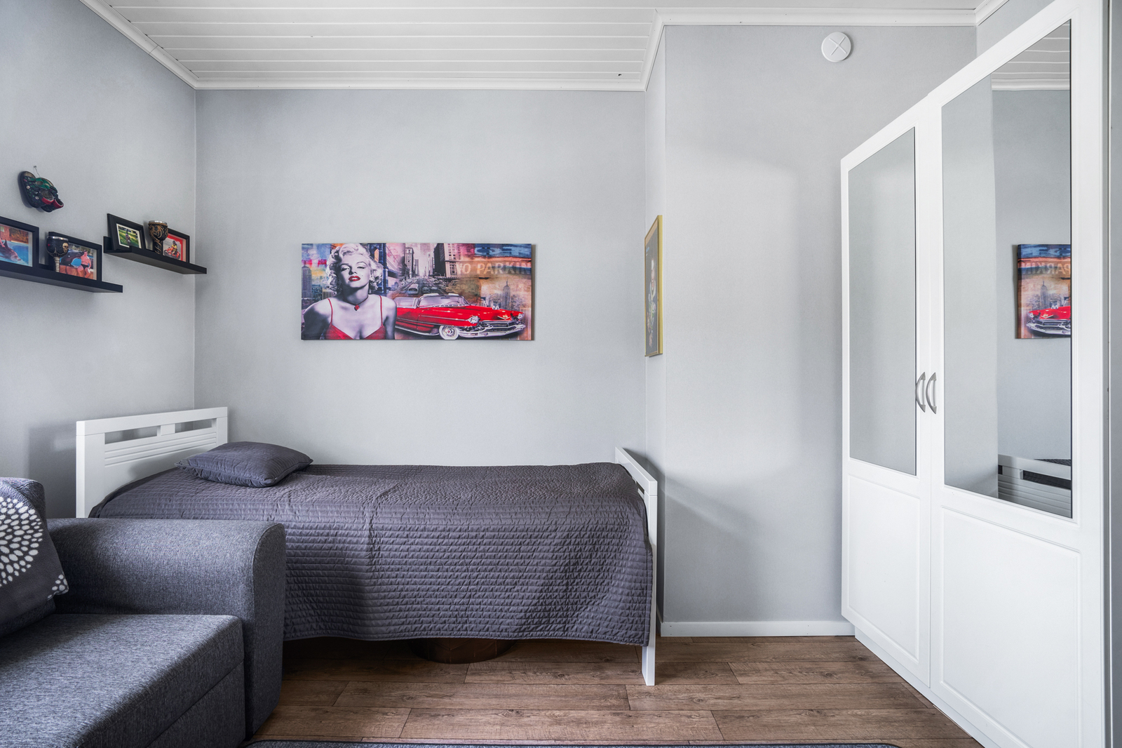 | Makuuhuoneen kuvaus | Lukumäärä: 3, seinät (tapetti), lattiat (muovimatto) |