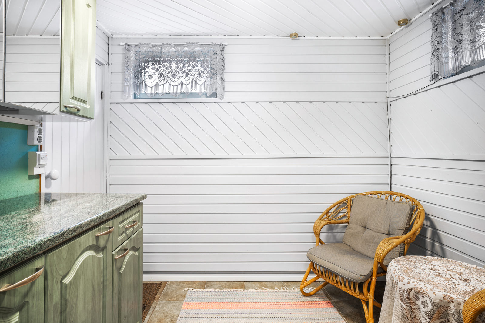 | Saunan kuvaus | Seinät (puu), lattiat (laatta), Puukiuas |