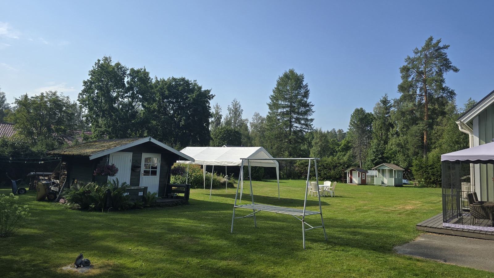 Talo sijaitsee omalla isolla 1681 m2 tontilla. Suojaisalla takapihalla on tilaa lasten leikkeihin ja peleihin ja mahdollisuus toteuttaa puutarhaunelmia. Pihalla myös leikkimökki ja aitta/varasto.