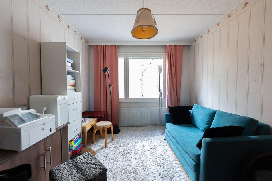 | Olohuoneen kuvaus | Seinät (tapetti), lattiat (parketti) |
