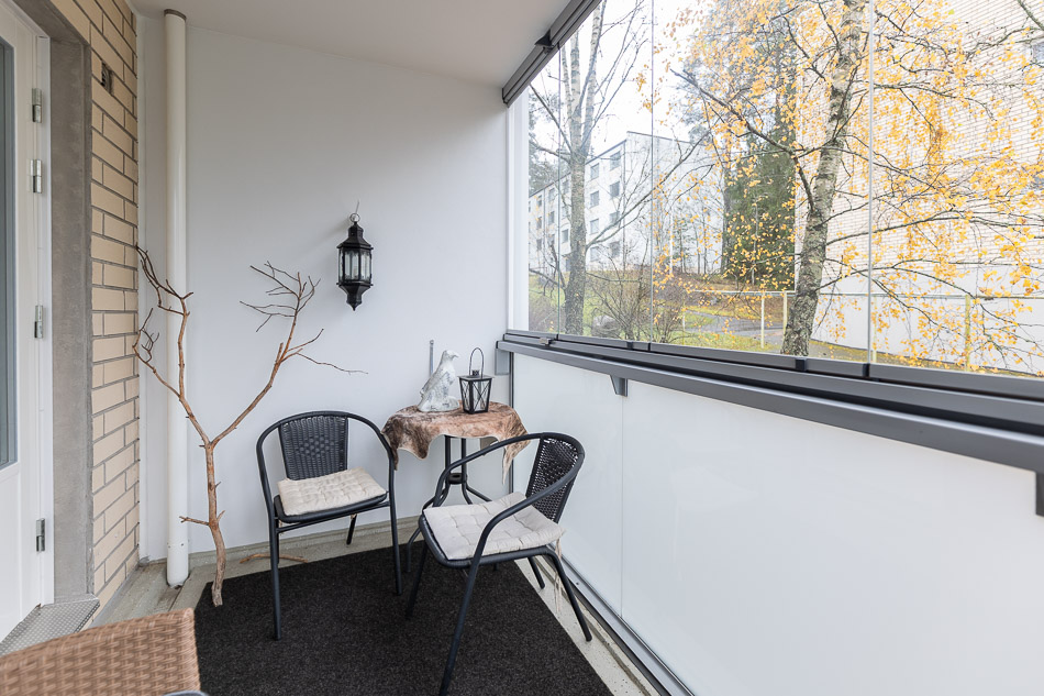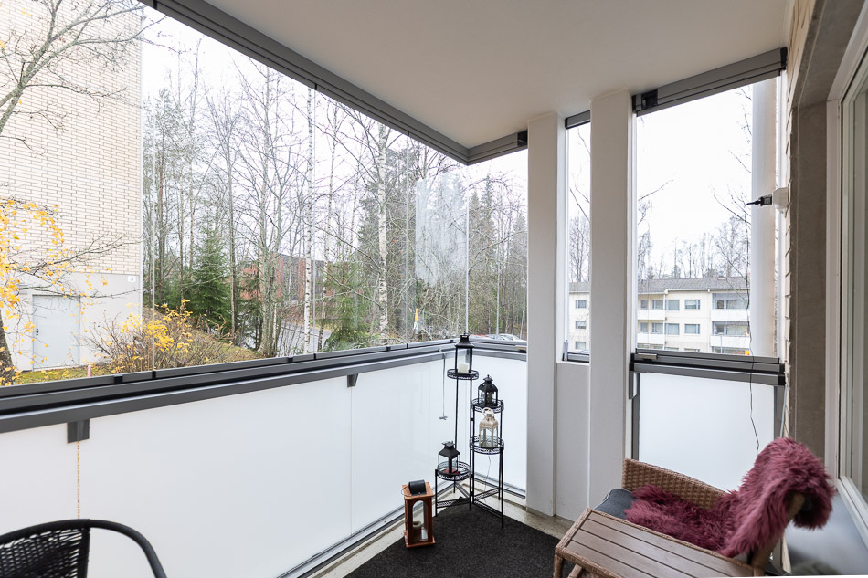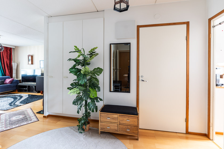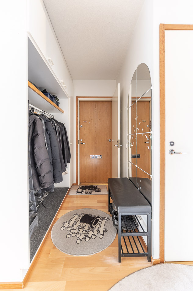 Asunnosta löytyy oma sauna, vaatehuone sekä kaapistoja – arjen sujuvuutta parhaimmillaan. Kodin pinnat ja tilat tarjoavat erinomaisen pohjan oman näköisen kodin luomiseen, olipa kyseessä pieni perhe, pariskunta tai ikääntyneempi asukas.