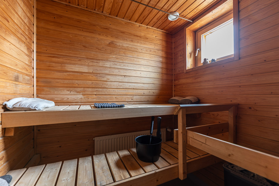 | Saunan kuvaus | Seinät (paneeli), lattiat (laatta), Sähkökiuas |