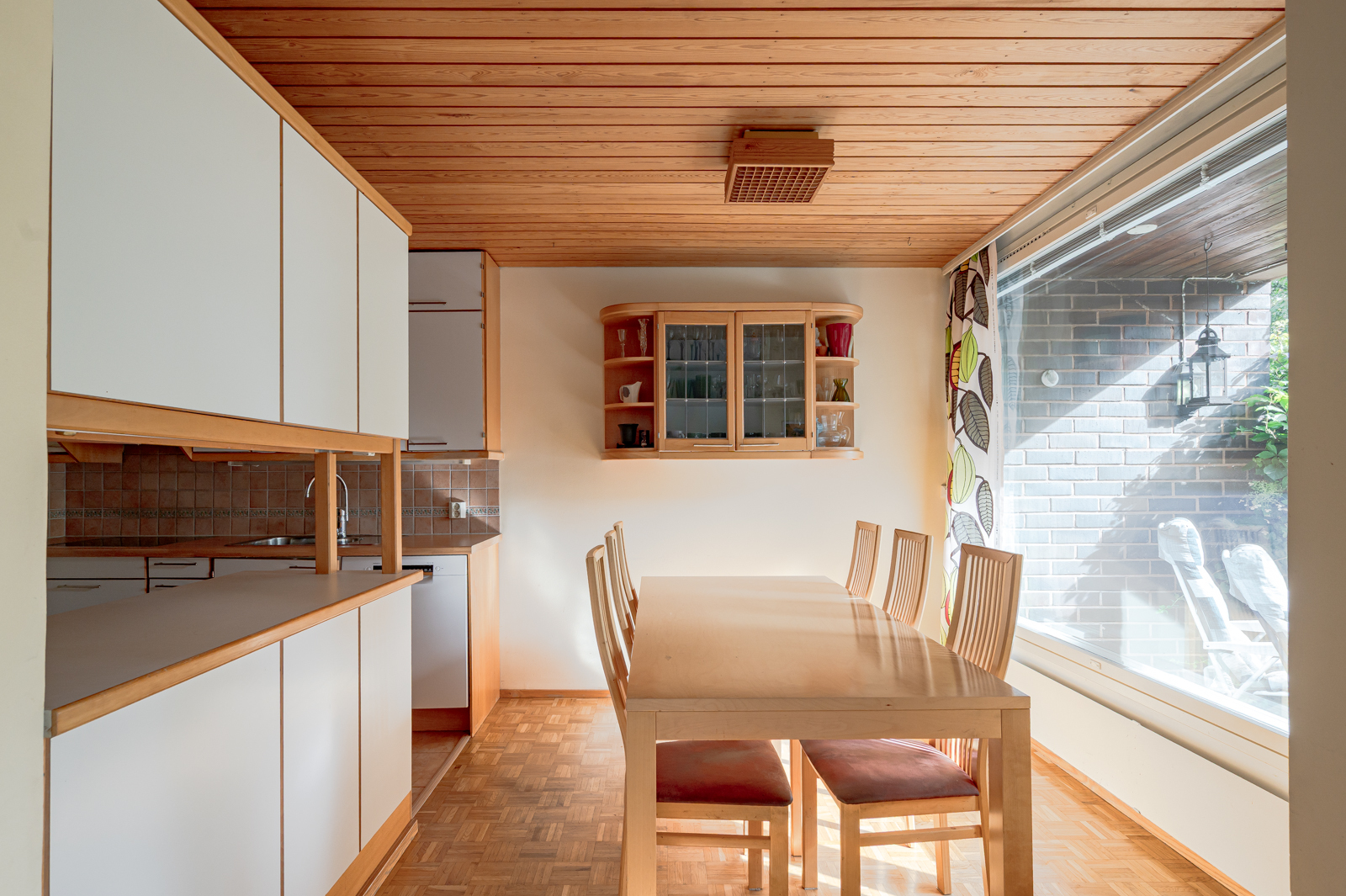 Viihtyisä rivitalon päätyhuoneisto, joka edustaa aikakautensa selkeää ja ajatonta arkkitehtuuria, jossa tilojen käytännöllisyys ja luonnonläheisyys kulkevat käsi kädessä. Huoneistossa on erinomainen pohjaratkaisu, ja se taipuu moniin eri tarpeisiin.