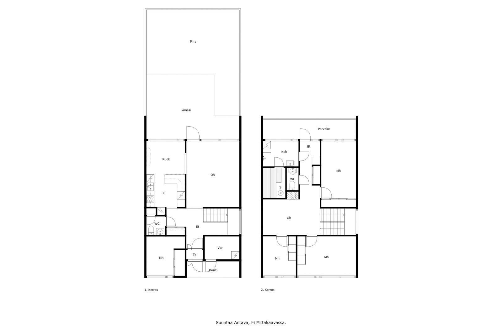 | Huoneistoselitelmä | 4 mh, k/rt, oh, aula/takkahuone, s-os, 2 x erill. wc |