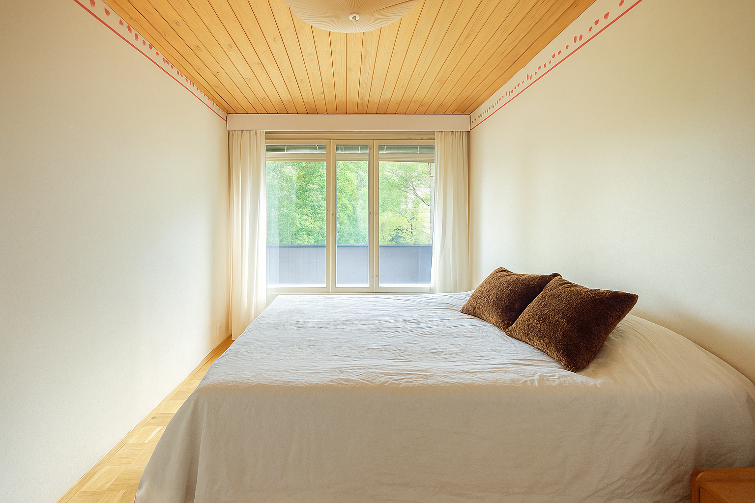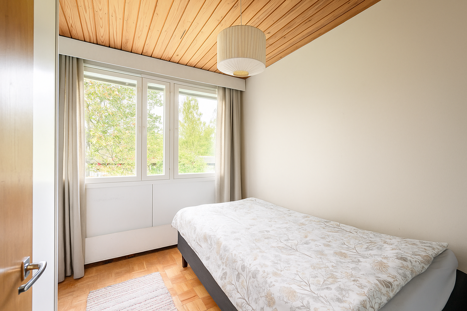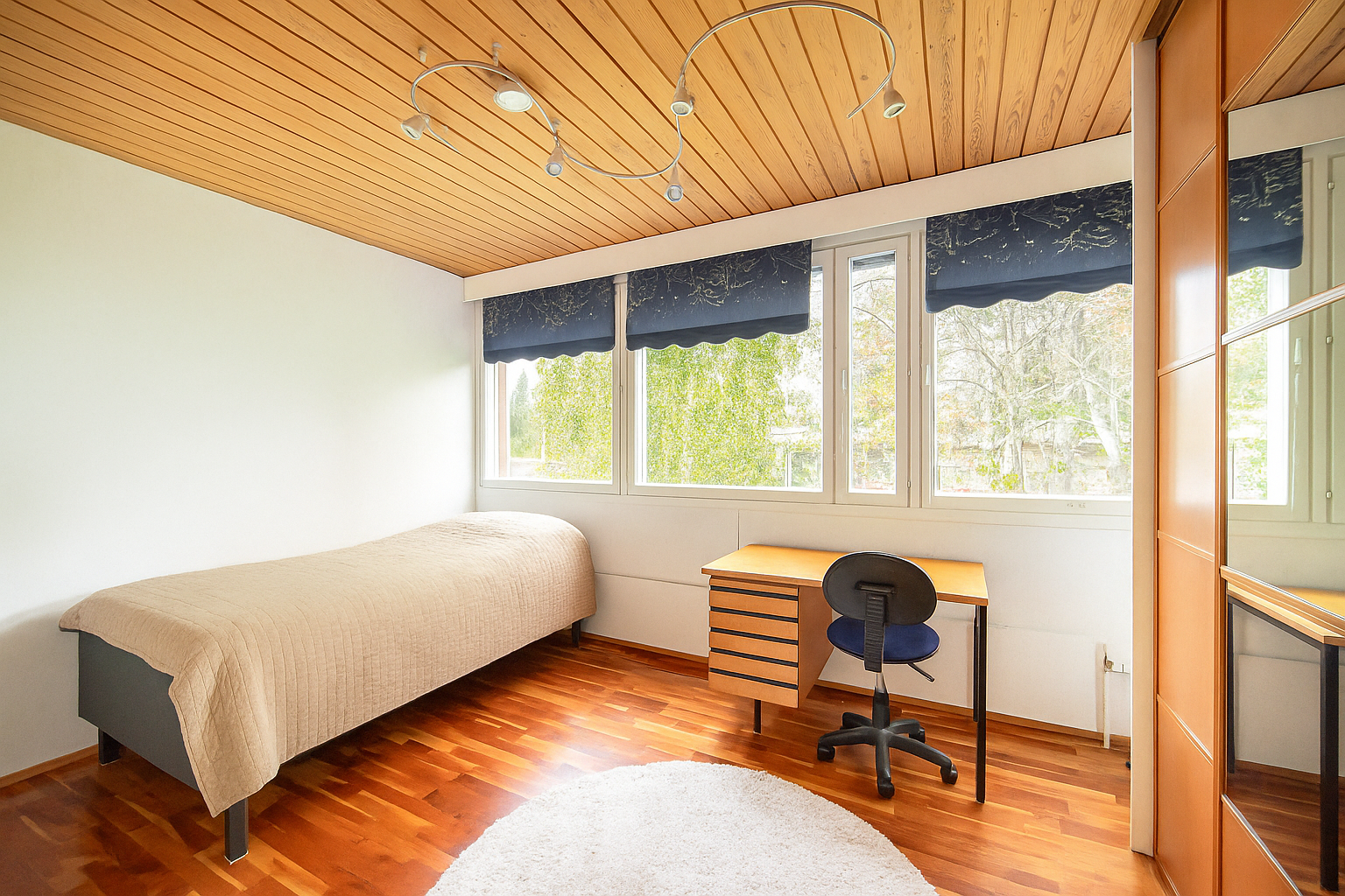 | Makuuhuoneen kuvaus | Huoneistossa on neljä makuuhuonetta: yksi alakerrassa ja kolme yläkerrassa. Lattiat parkettia/laminaattia, pienten makuuhuoneiden seinät maalattu, isojen tapettia. |